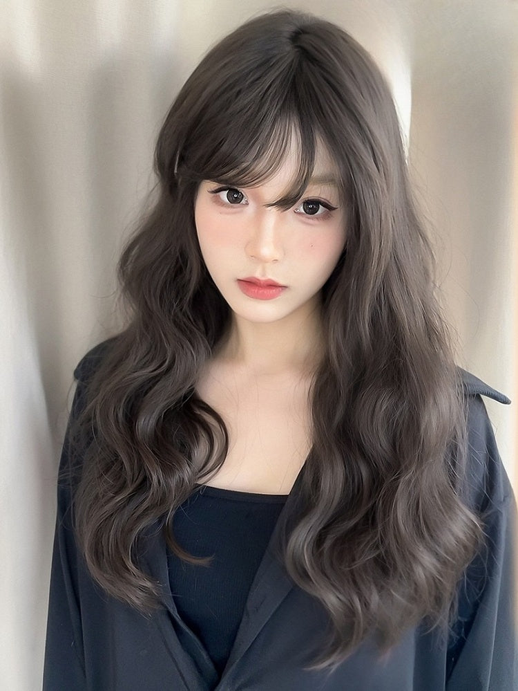 長さ60cmのウェーブヘア、前髪ありウィッグ(ブラウン)