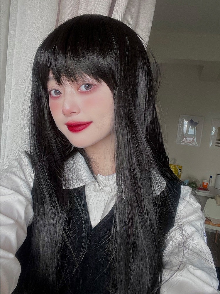 ブラック 72cm 長さストレートウィッグ(エアバング付き)