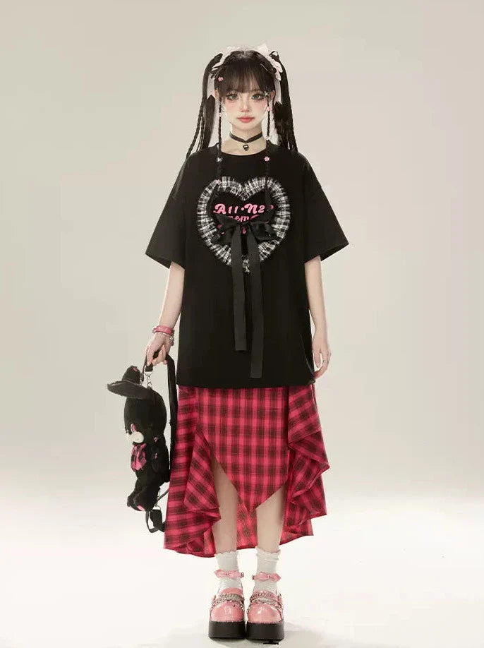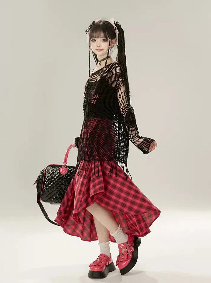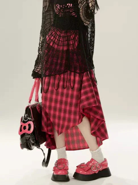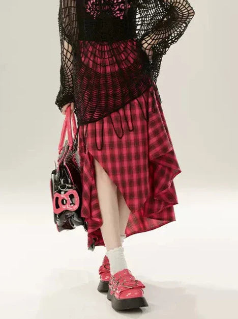 Aラインイレギュラースカートデザインチェックレトロ