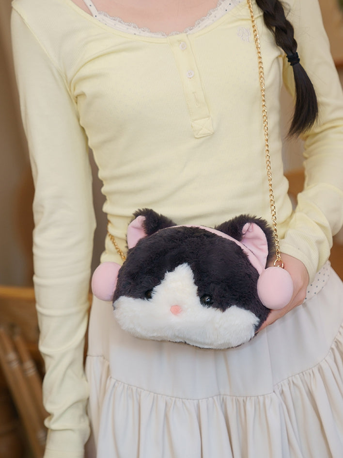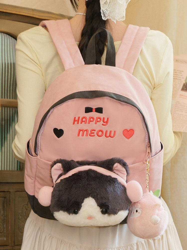 ピンクグレーの刺繍ハートとスエード、バックパック文字のぬいぐるみキティ取り外し可能