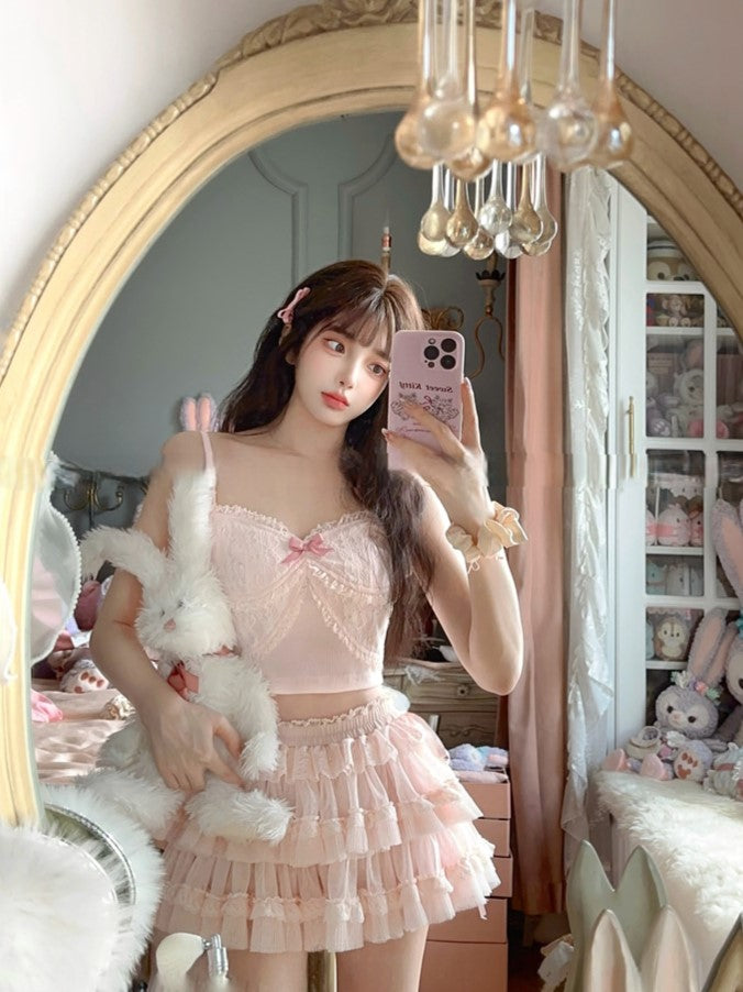 ● Bowknot Details / Floral Embroidery / Lace Applique / Thin Shoulder Straps