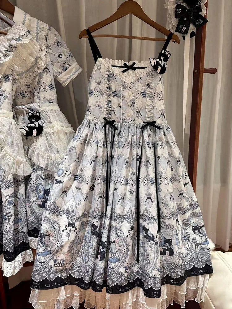 不思議の国のアリステーマのウサギとキティプリントのロリータジャンパースカート