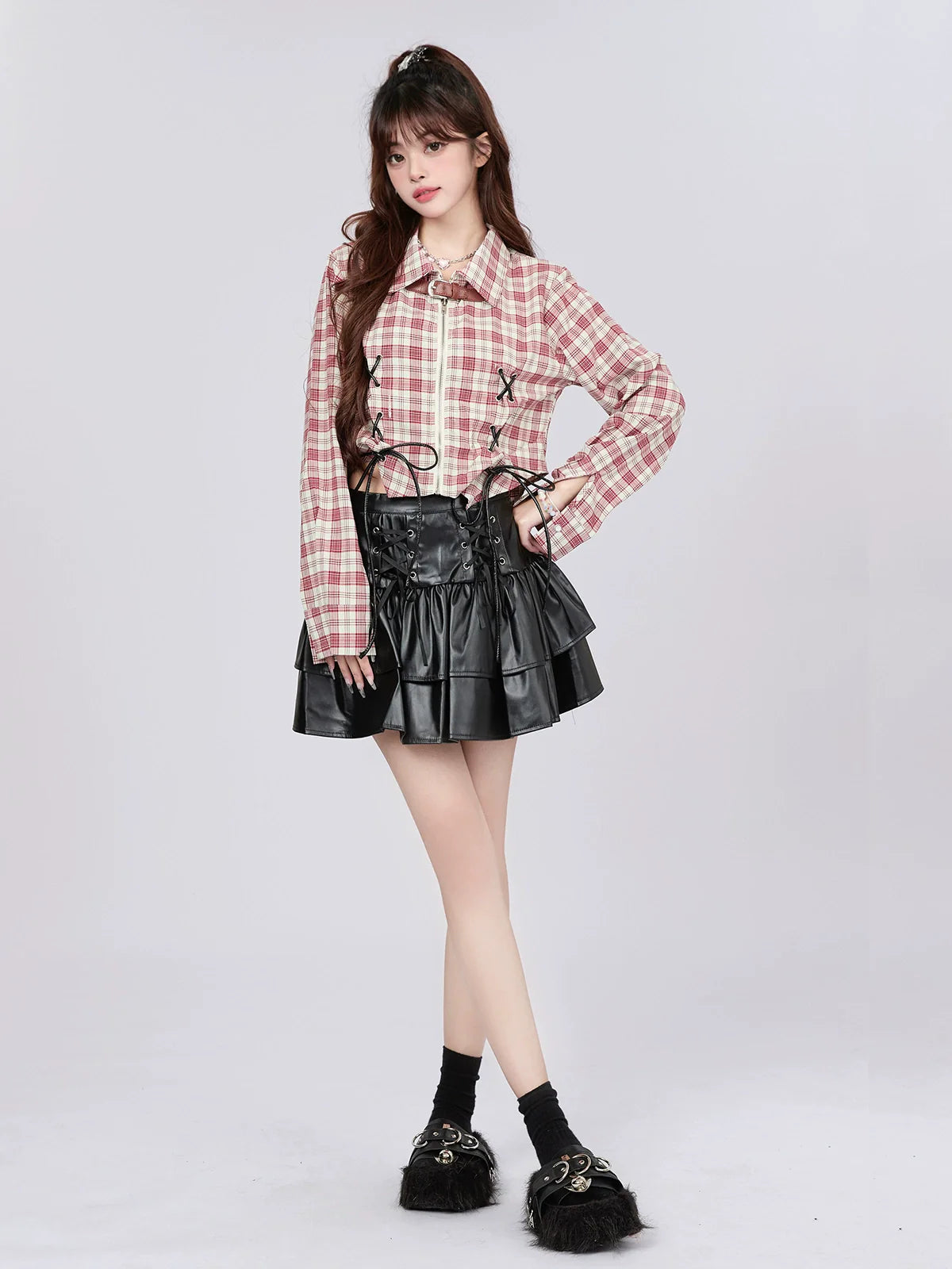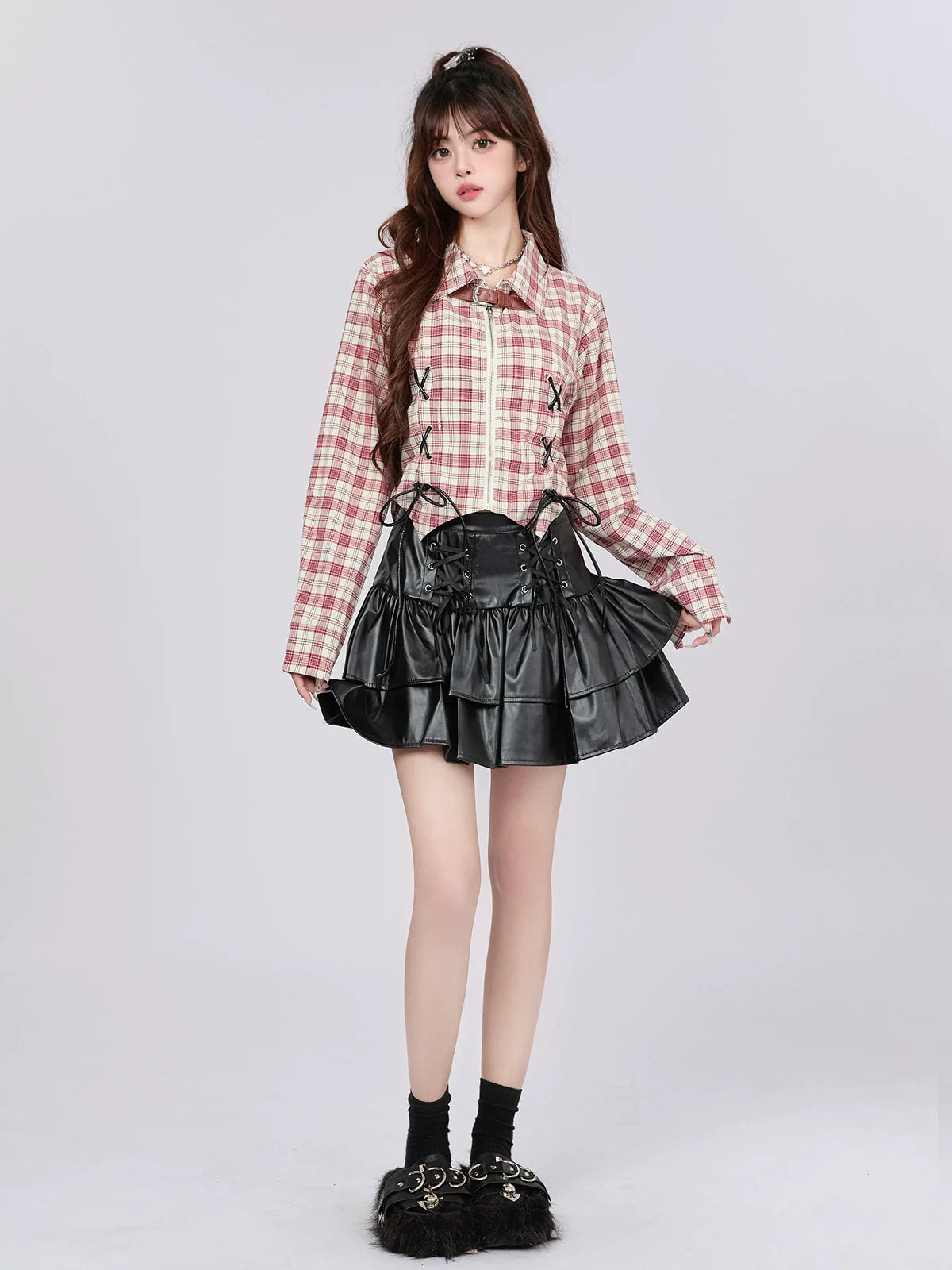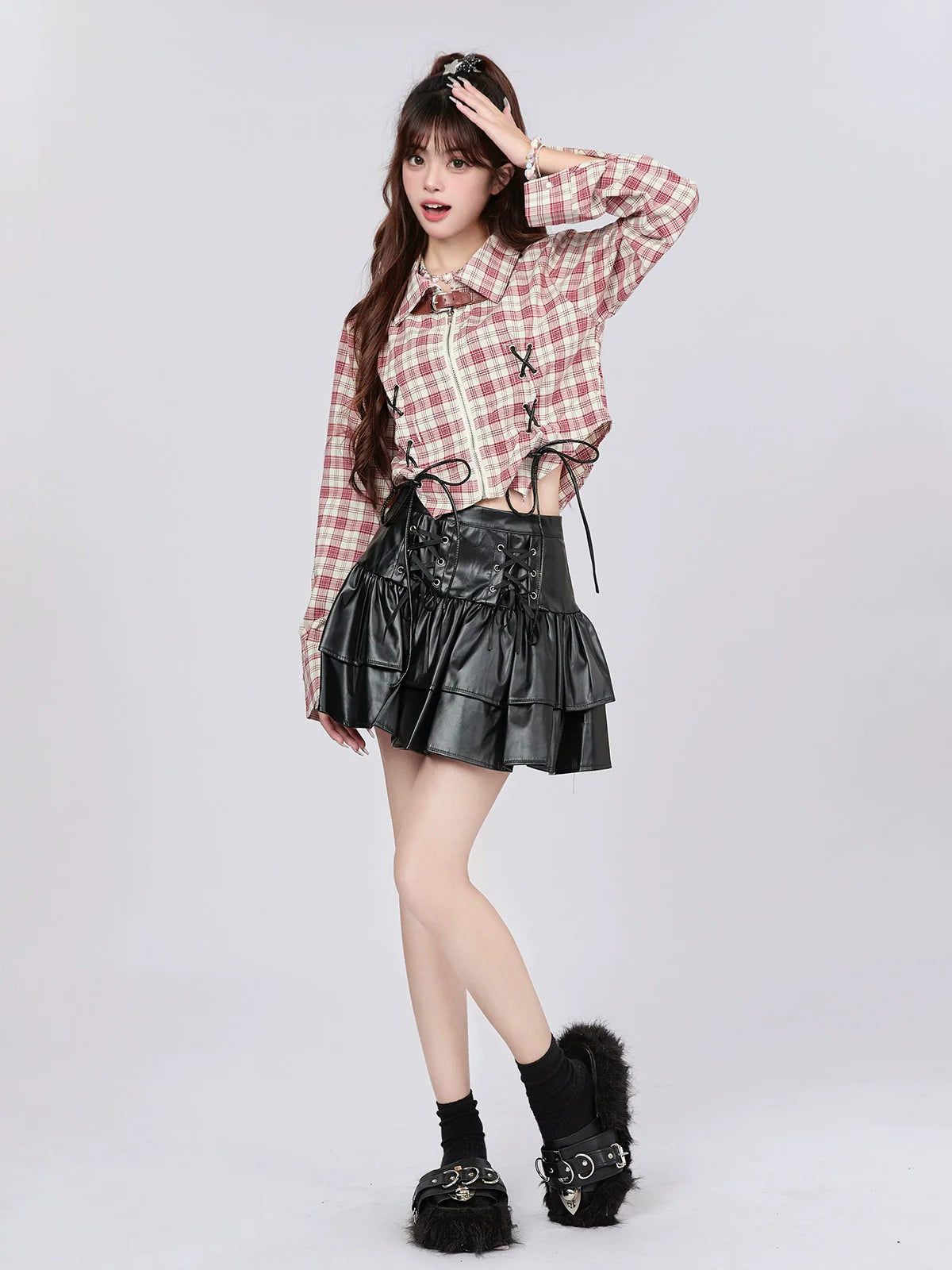 レトロなストラップのショートシャツ。キュートなアメリカンチェック柄が特徴。どんなコーディネートにも遊び心を加えてくれます。