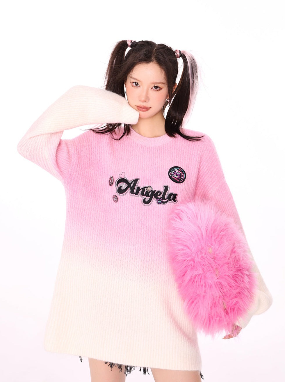 アメリカングラデーション染めロゴピンクアンジェラタイセーター