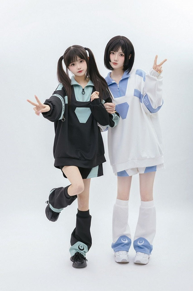 青と白のオールドスクールロリータファッションドレス 蝶結びディテール JSK セット