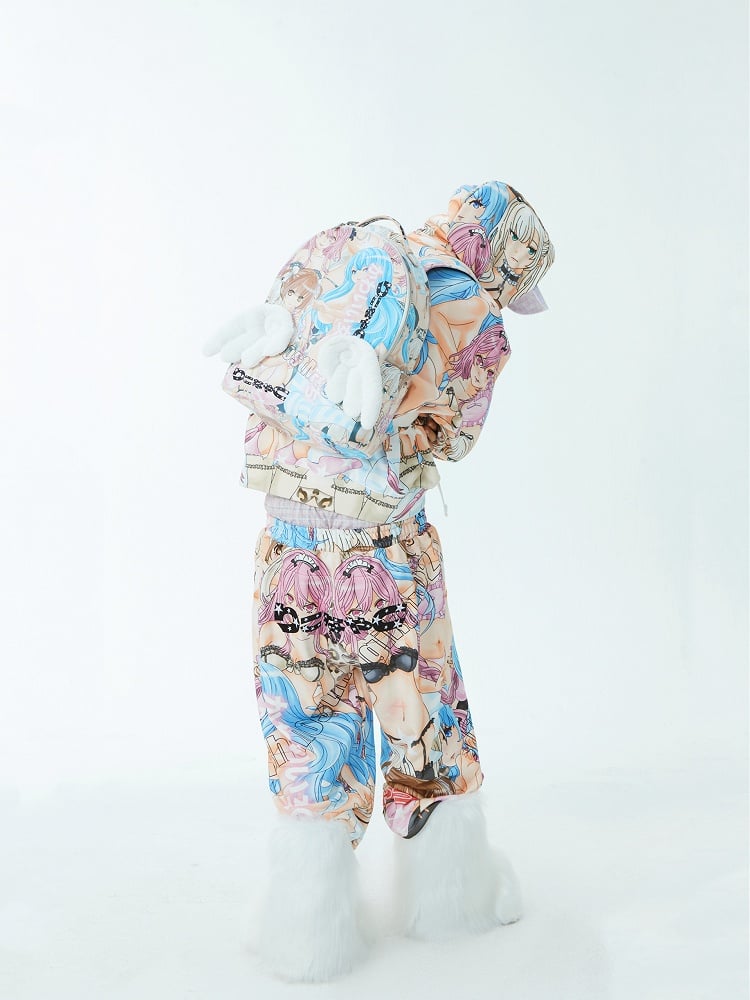 天使の羽とバックパック、カラフルな漫画プリントPU