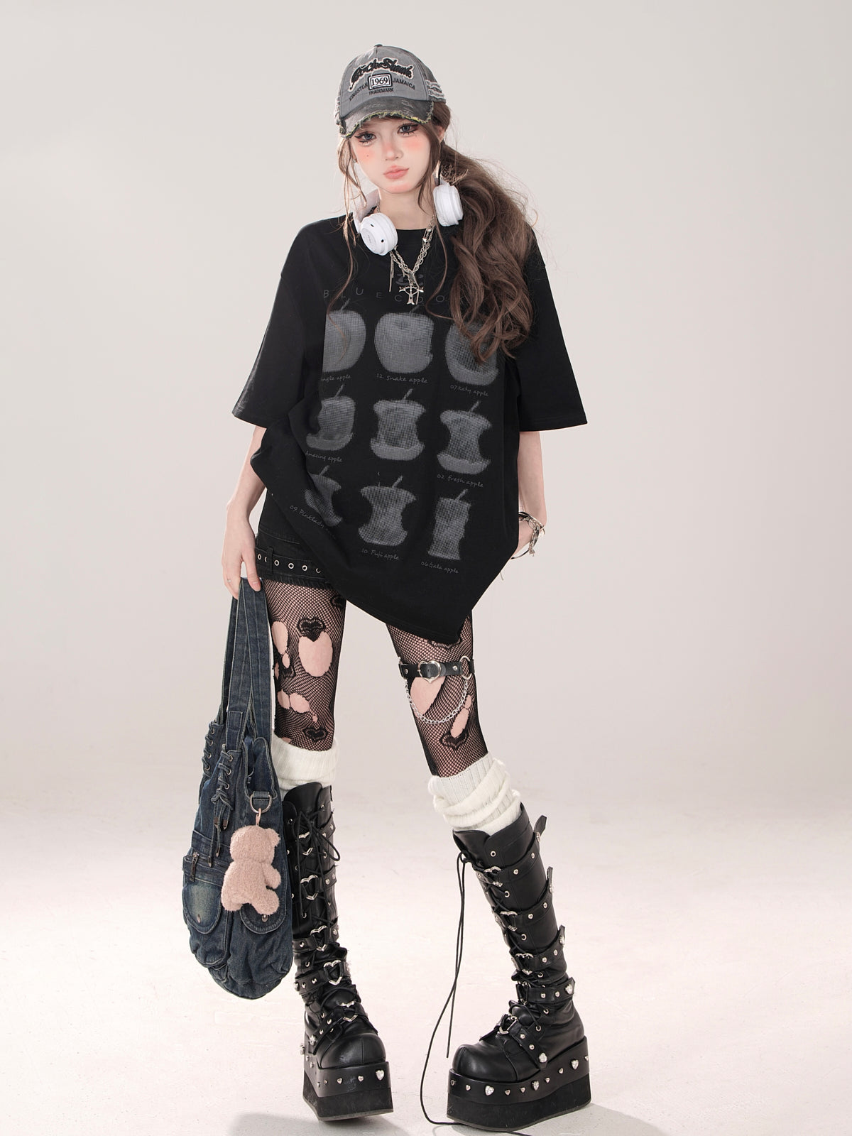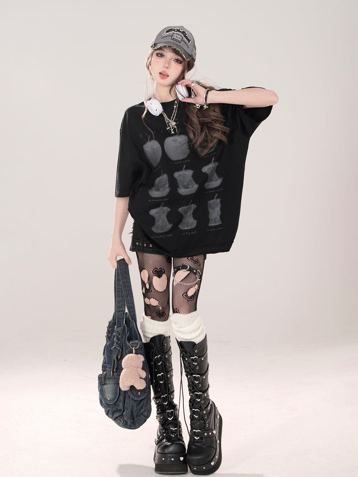 アメリカンテーマのゆったりTシャツで、リンゴへの愛を表現しましょう。キュートなリンゴプリントが特徴のこのシャツは、どんなカジュアルなシーンにもぴったりです。ワードローブにこのユニークなアイテムを加えれば、快適でスタイリッシュな着こなしが楽しめます。