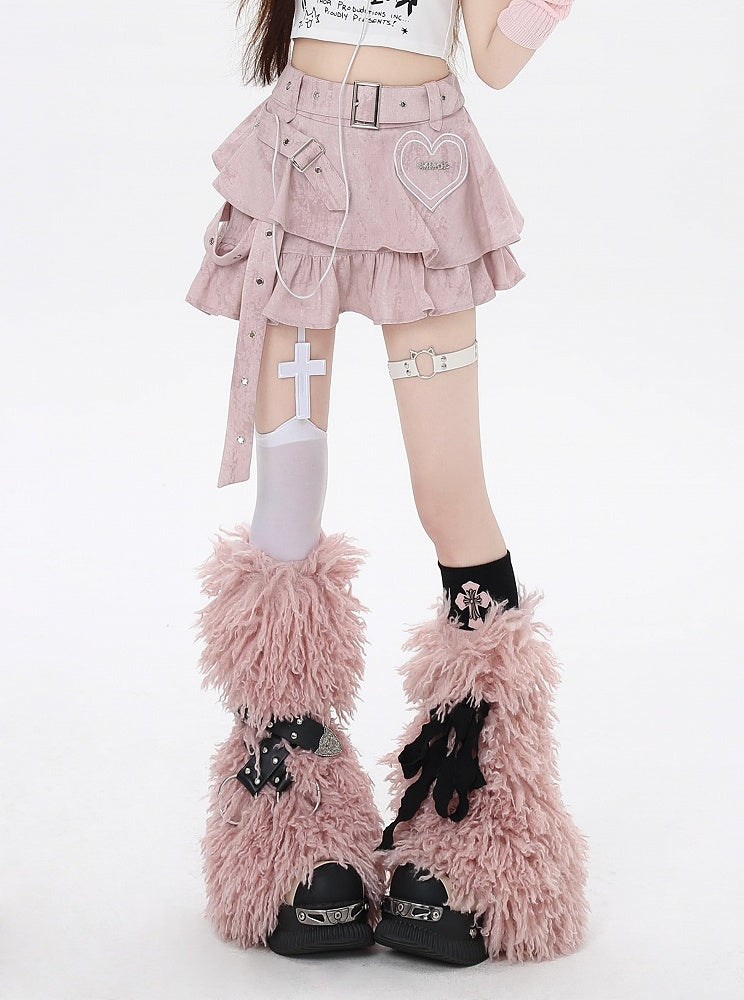 Y2K ピンク スイートハート アップリケ アシンメトリー ビタースイート ティアードスカート