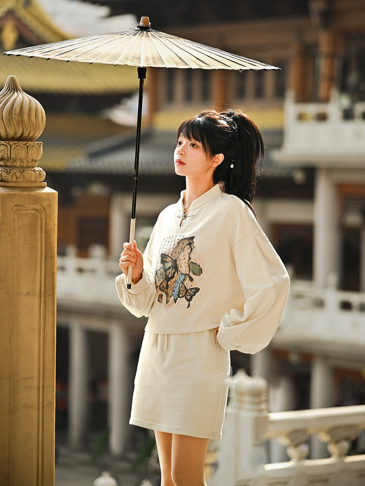 青と白のオールドスクールロリータファッションドレス 蝶結びディテール JSK セット