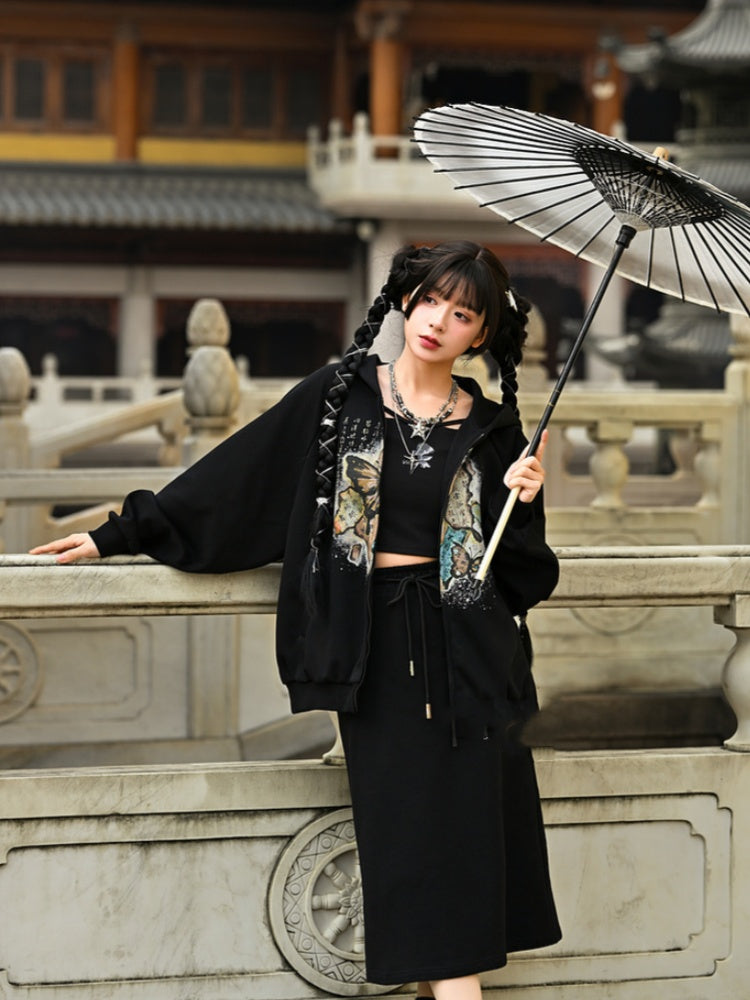 黒と白のオールドスクールロリータファッションドレス蝶結びロリータJSKセット