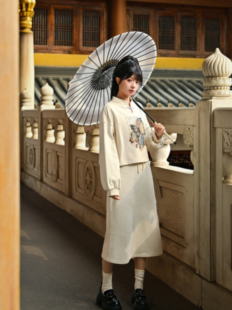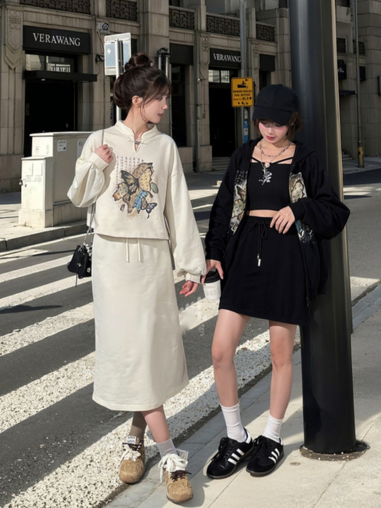 アプリコット/ブラックAラインスカート ショート/ロングバージョン