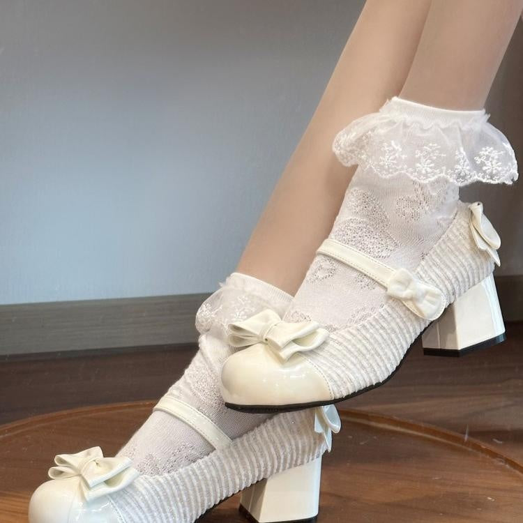 愛らしいアプリコット色のリボン結びラウンドトゥメリージェーンは、快適な3.5cmのブロックヒールが特徴です。キュートなリボン結びが甘さをプラスし、素敵なロリータルックにぴったりです。履き心地の悪いヒールとはお別れして、スタイリッシュで快適な履き心地をお楽しみください!