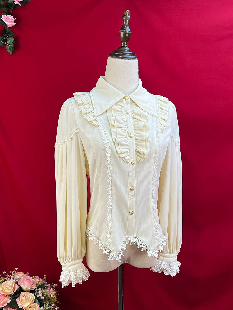 アプリコットのエレガントなポインテッドカラーの長袖シャツ