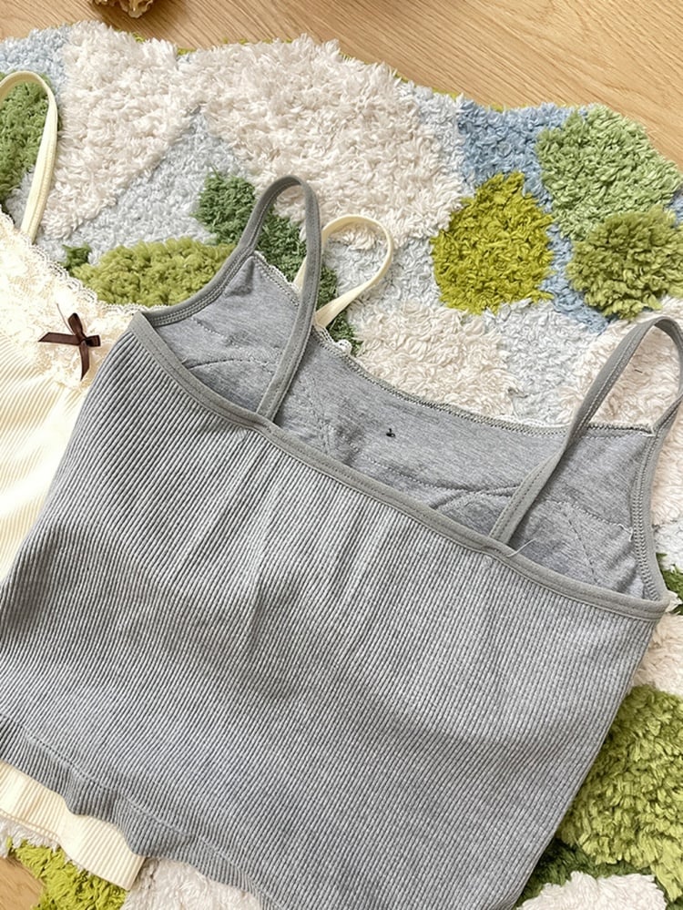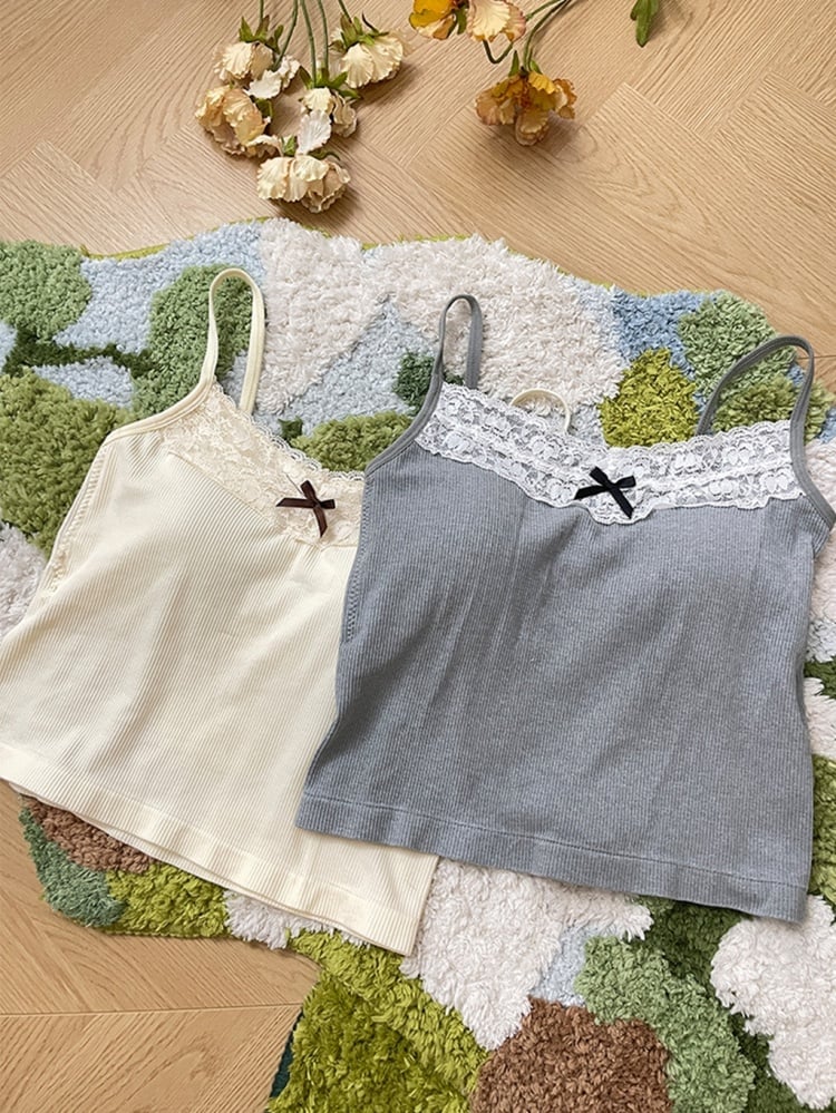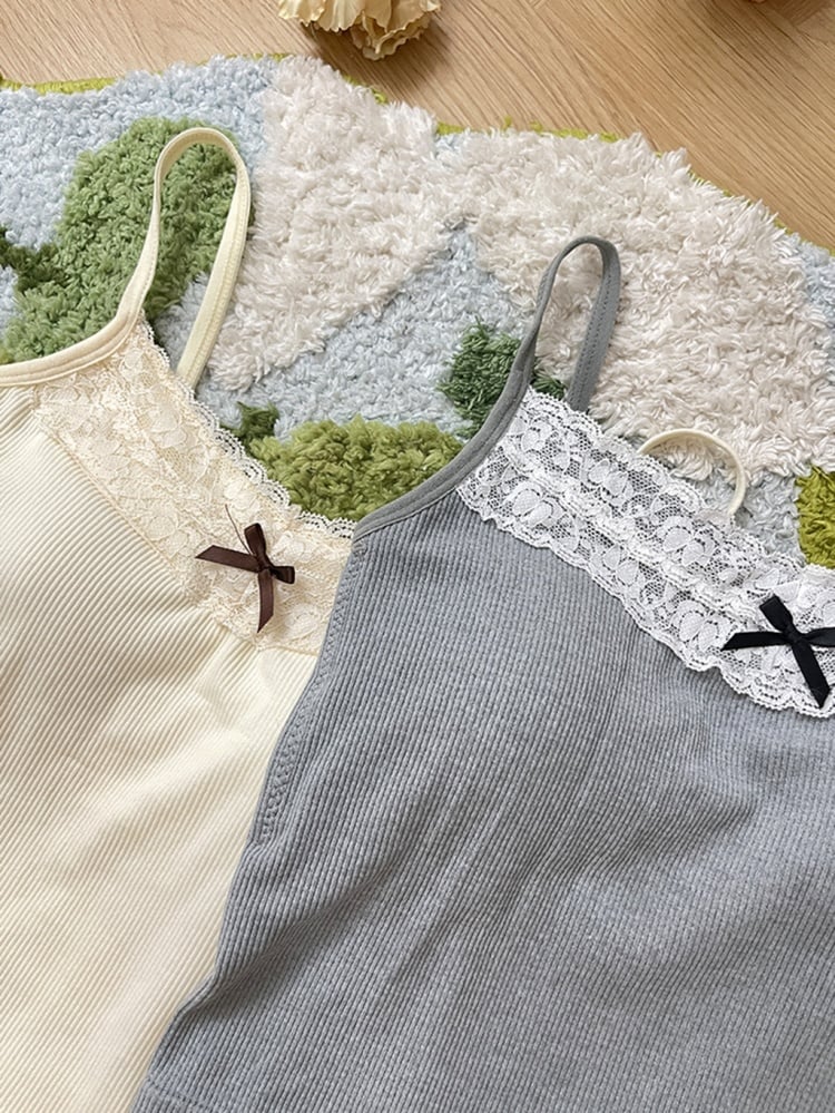 アプリコットグレーのレーストリム ボウノット キャミソールトップ