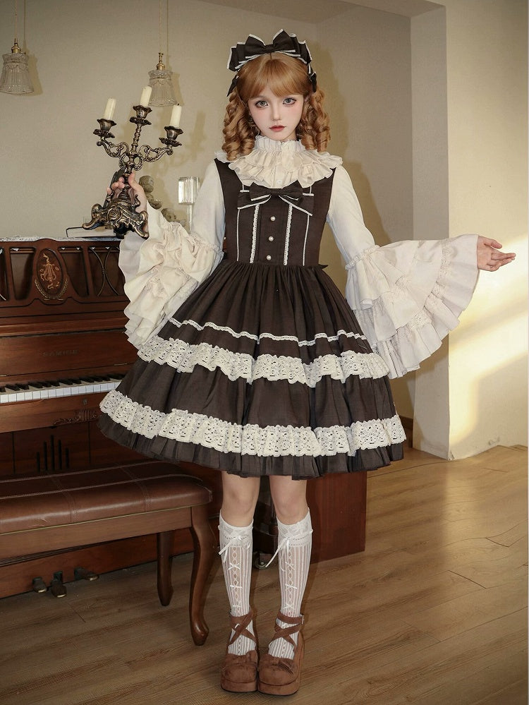 黒と白のオールドスクールロリータファッションドレス蝶結びロリータJSKセット