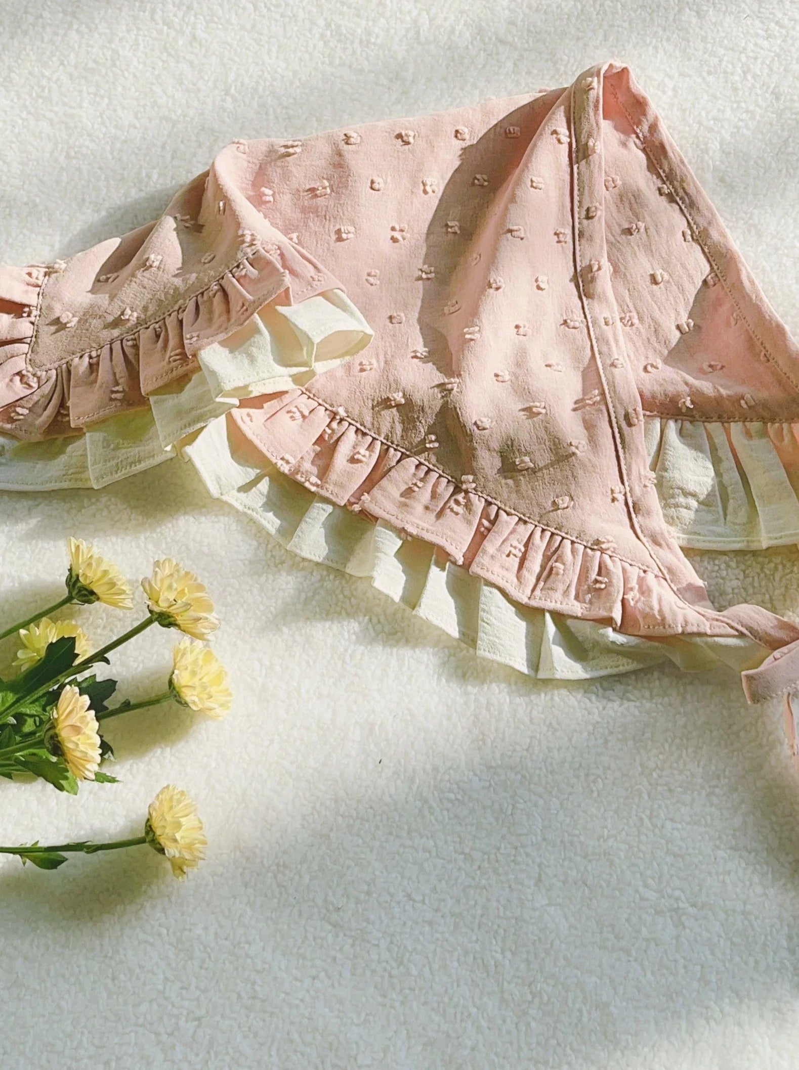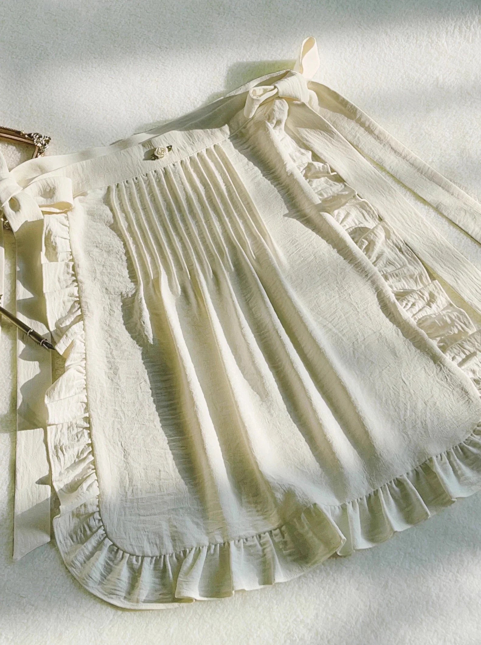 エプロン、フリルワンピース、レトロなバンダナがセットになった、キュートな装いに。お料理や工作に素敵なアクセントを添えるのにぴったりです。