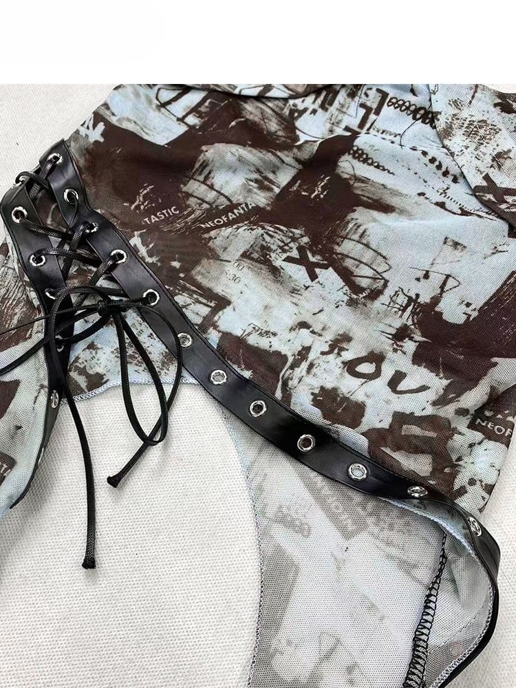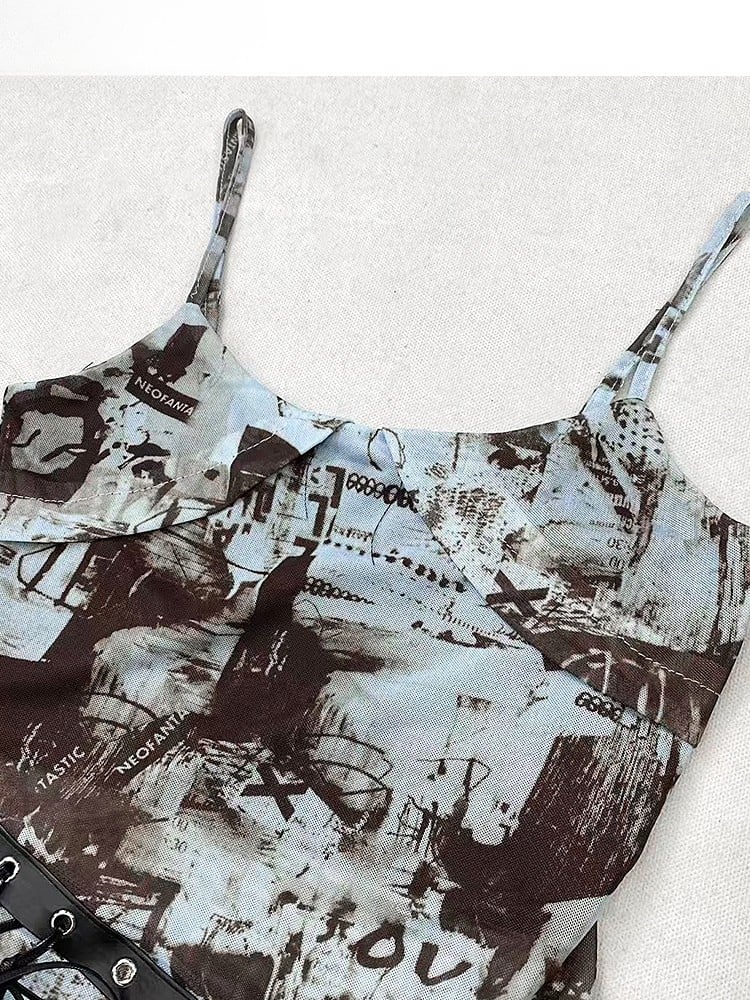 ● カスケードフリルアクセント / レースアップディテール / 細いショルダーストラップ / タイダイ