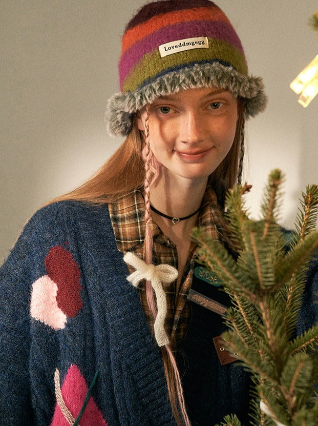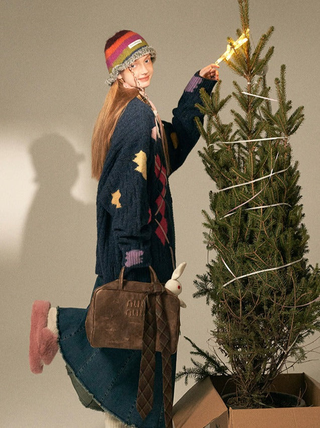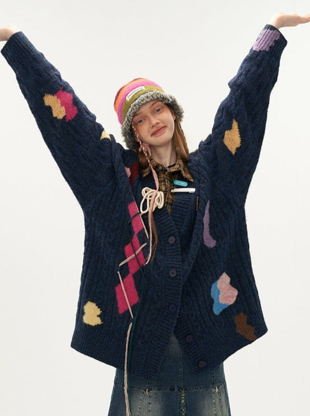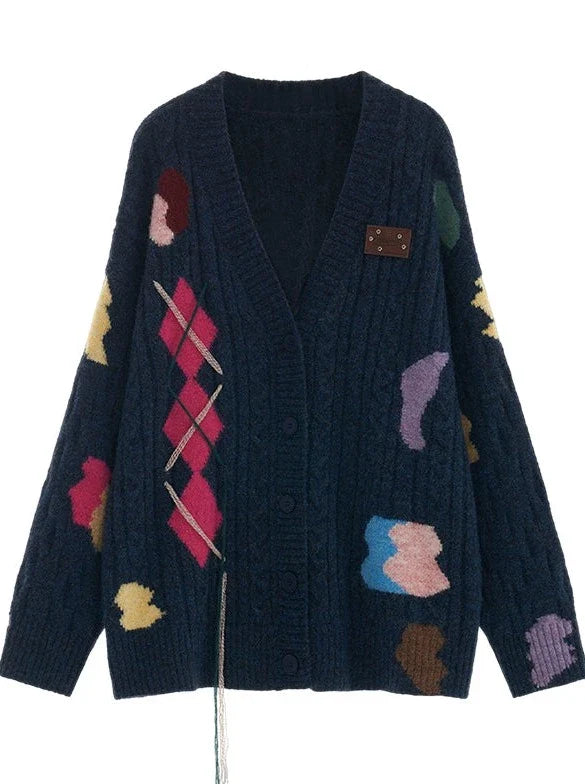 アシンメトリーニットオーバーデザインカーディガンレトロカラフル