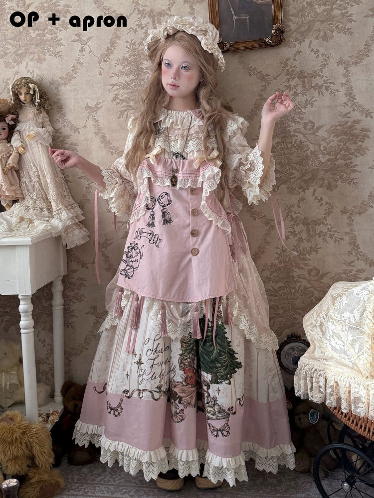 ピンクと白のオールドスクールロリータファッションドレス、蝶結びディテール、ロリータJSKセット