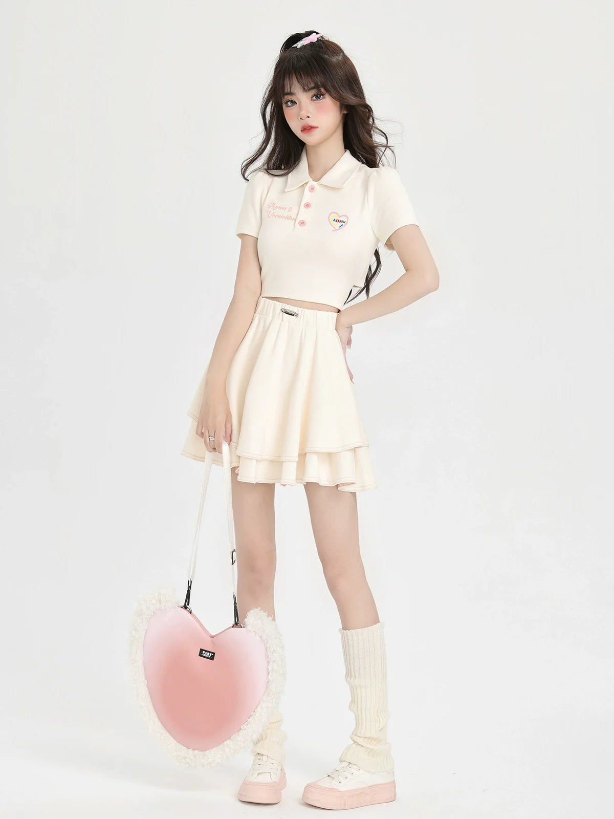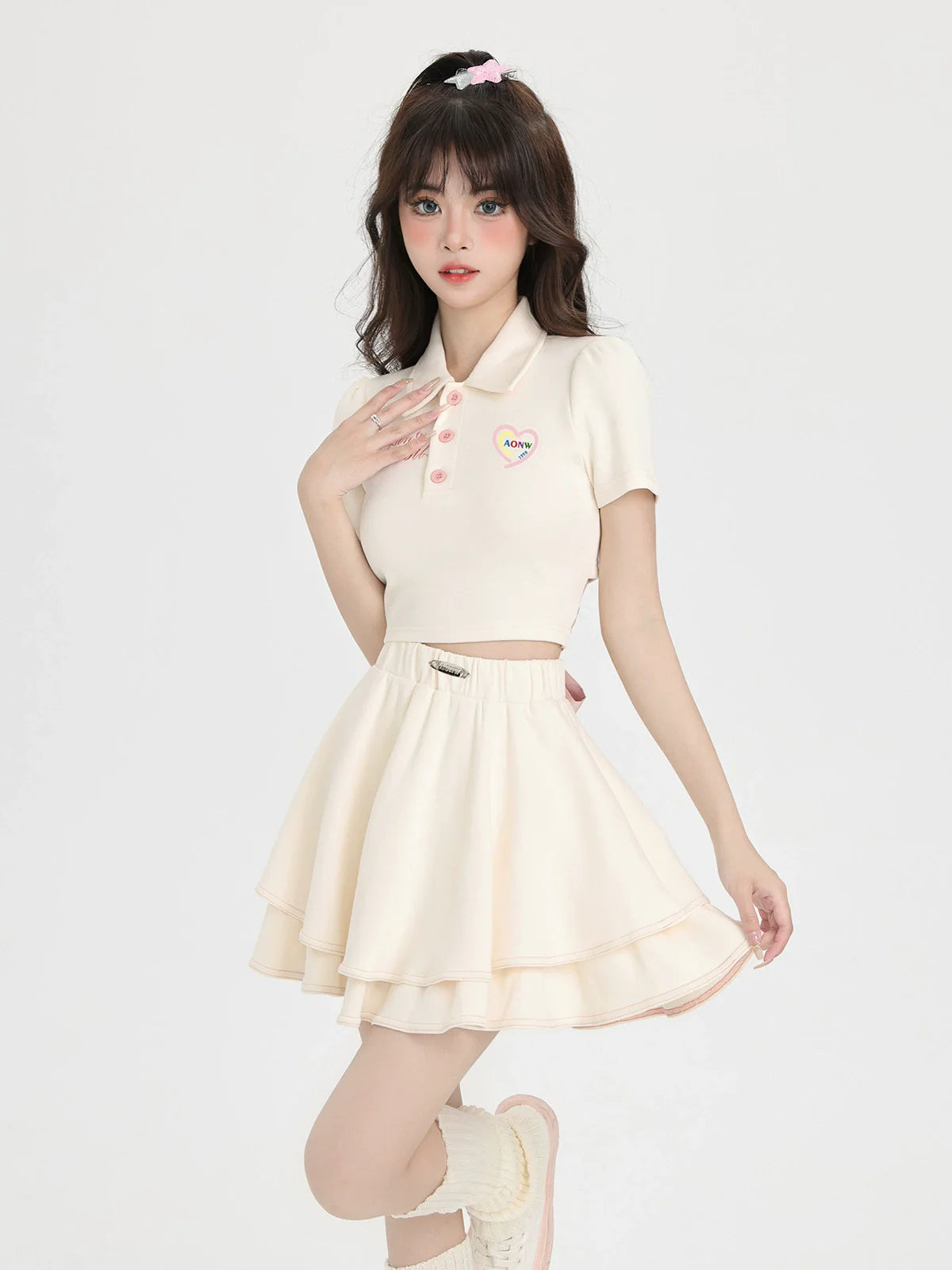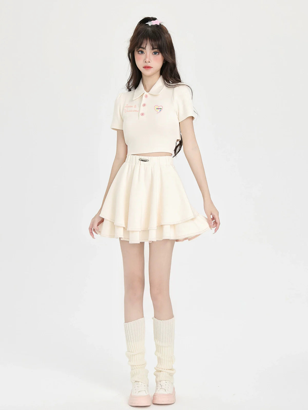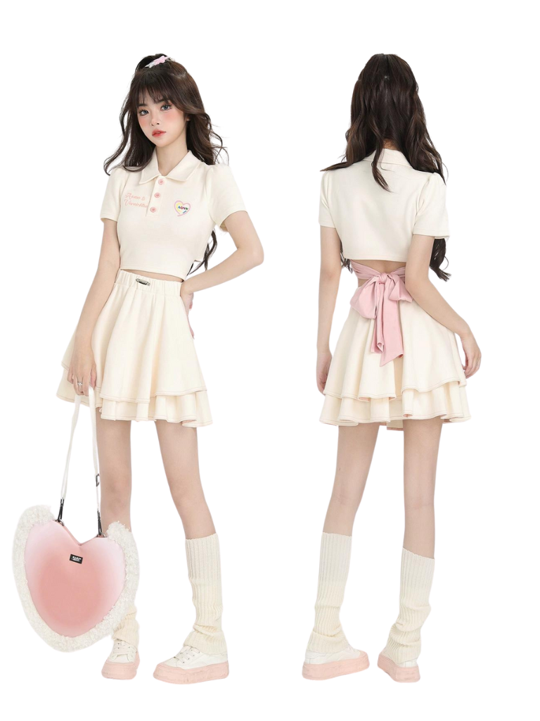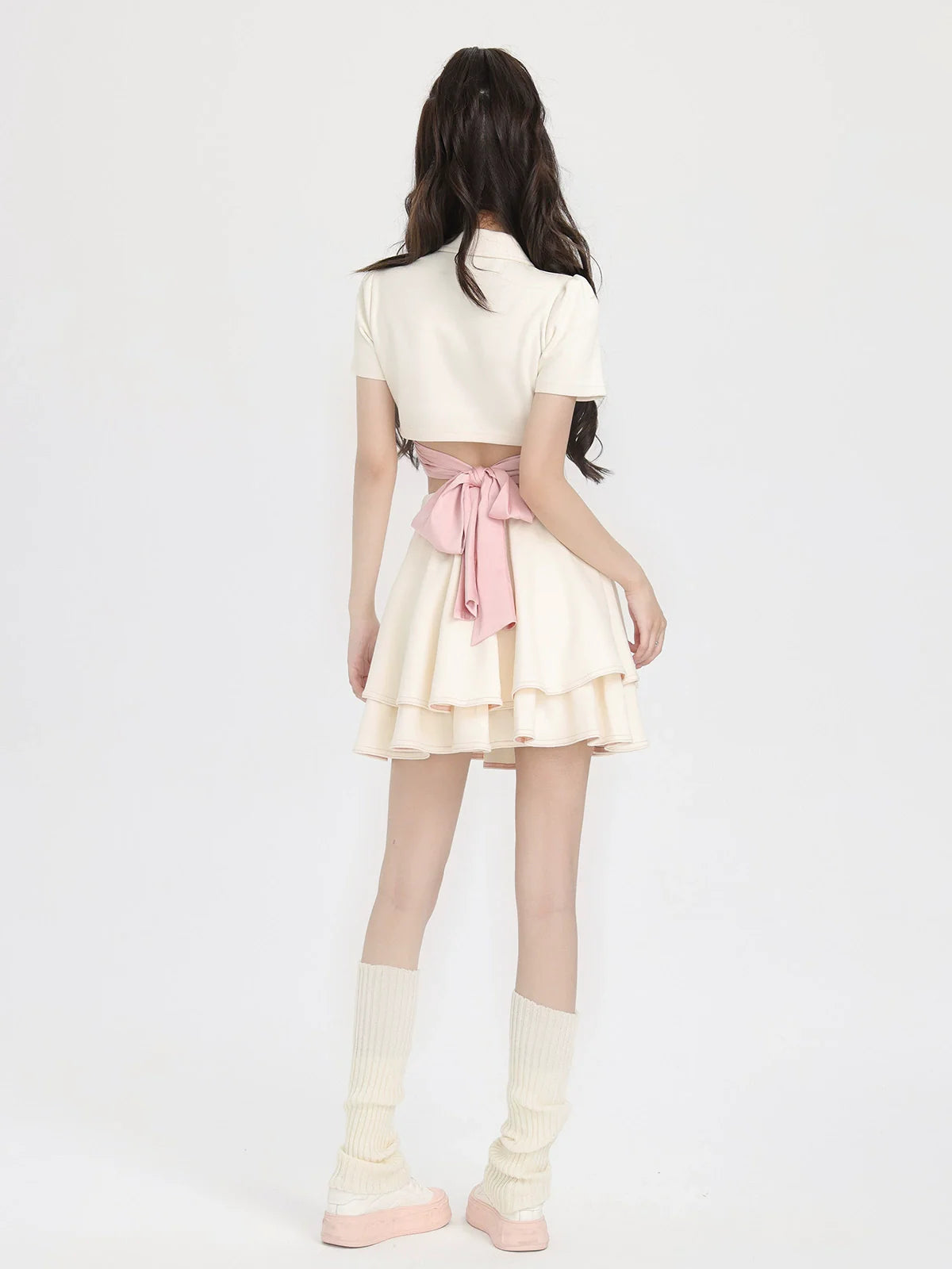 バックスタイルカラーポロリボンスカートシャツバレエショート