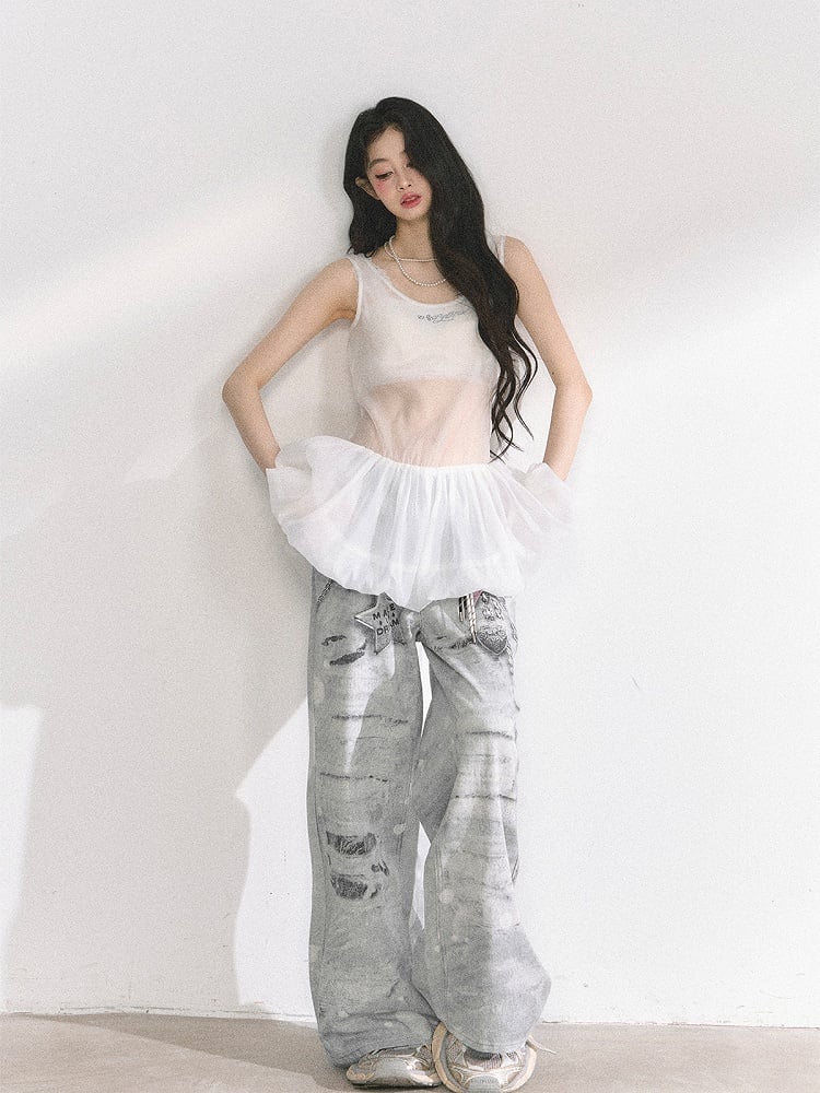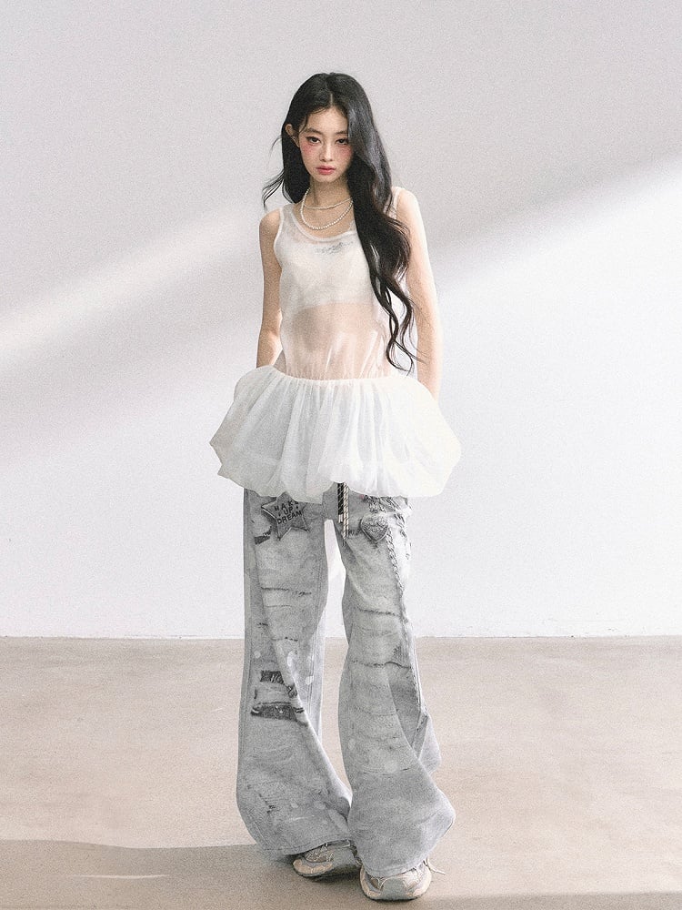ホワイトのセルフタイボウバック、バックレスメッシュバブルオーバートップ