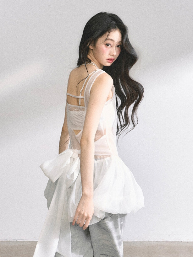 バックレスメッシュバブルオーバートップホワイトセルフタイボウバック