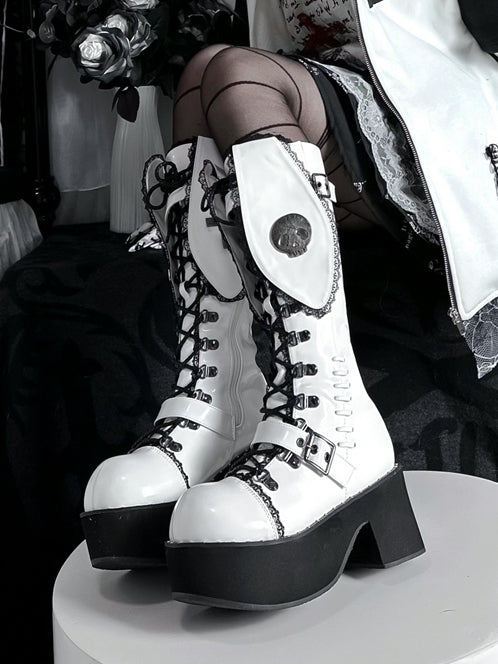 Bad Bunny レーストリム バニーイヤー ホワイト PU ゴシック プラットフォームブーツ