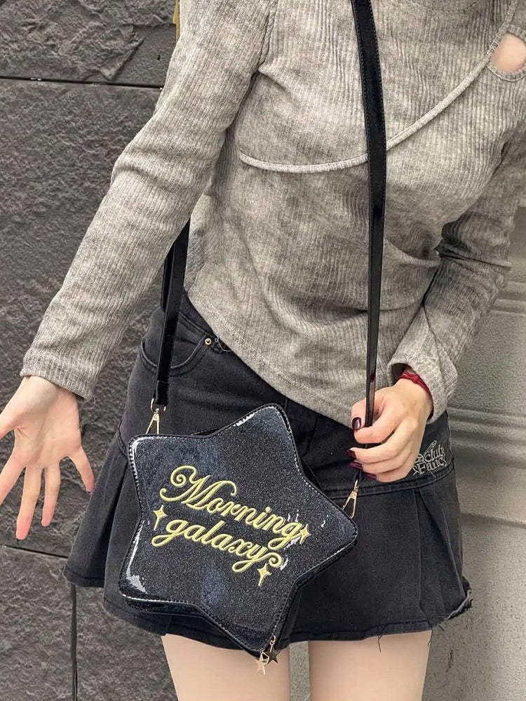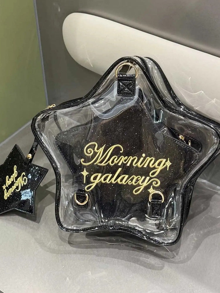 取り外し可能なバッジチャーム付きブラックPU星型痛バッグセット