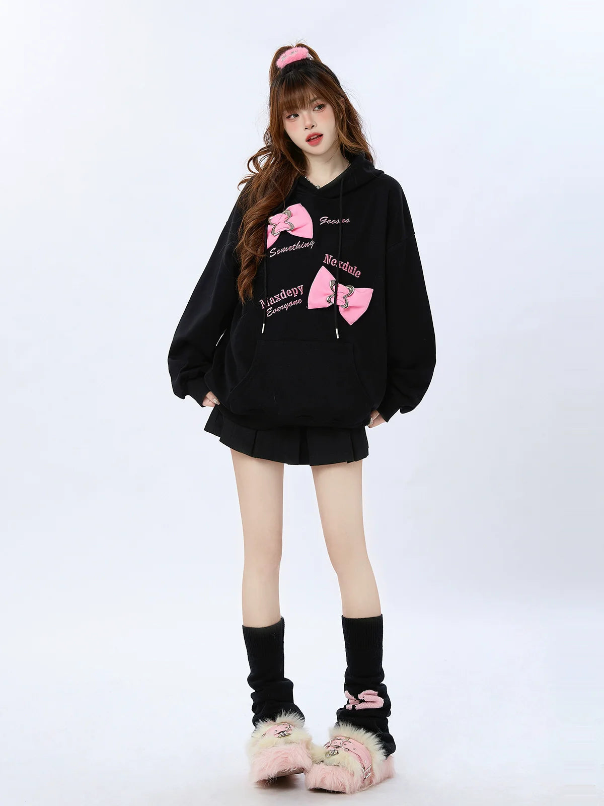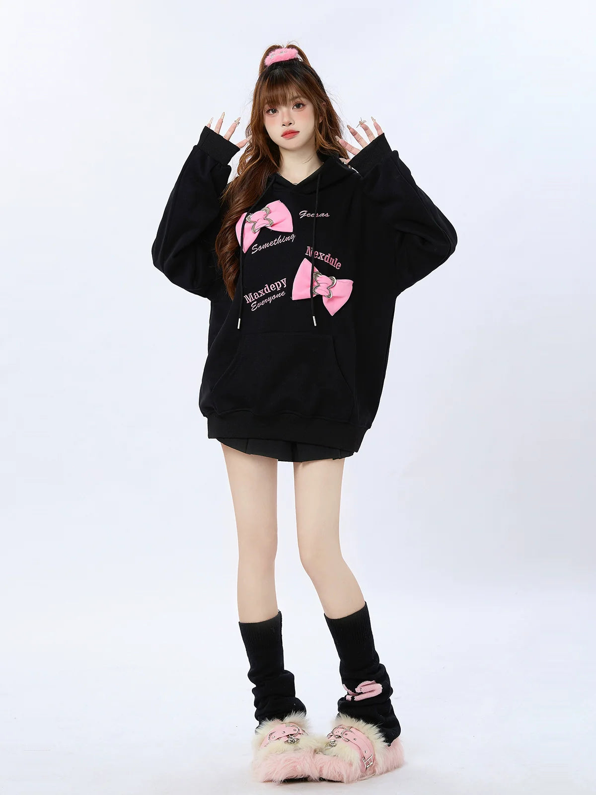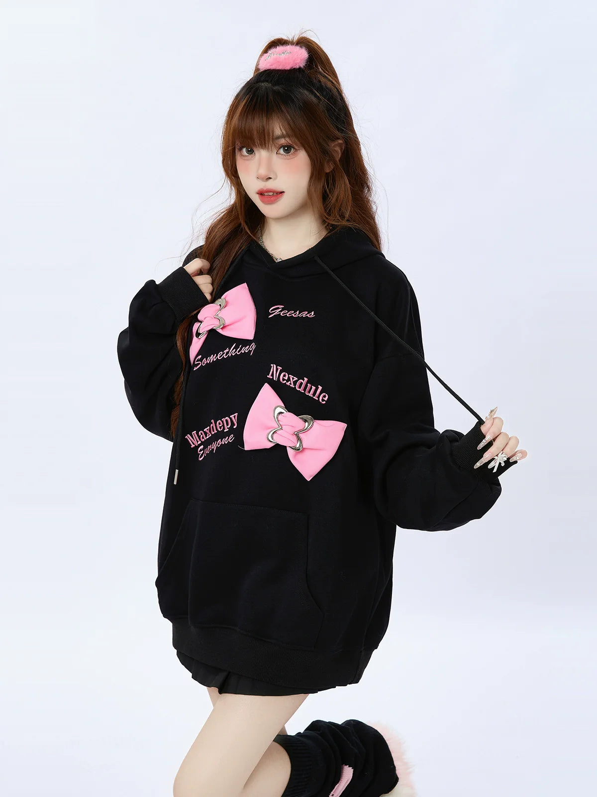 バッグ オーバーサイズ リボン ルーズトップ フード付き