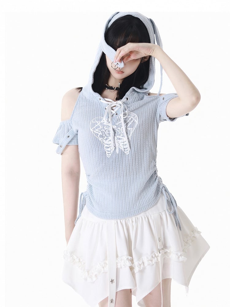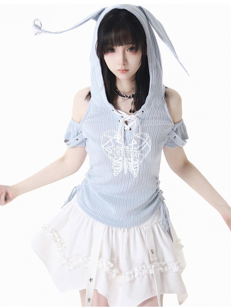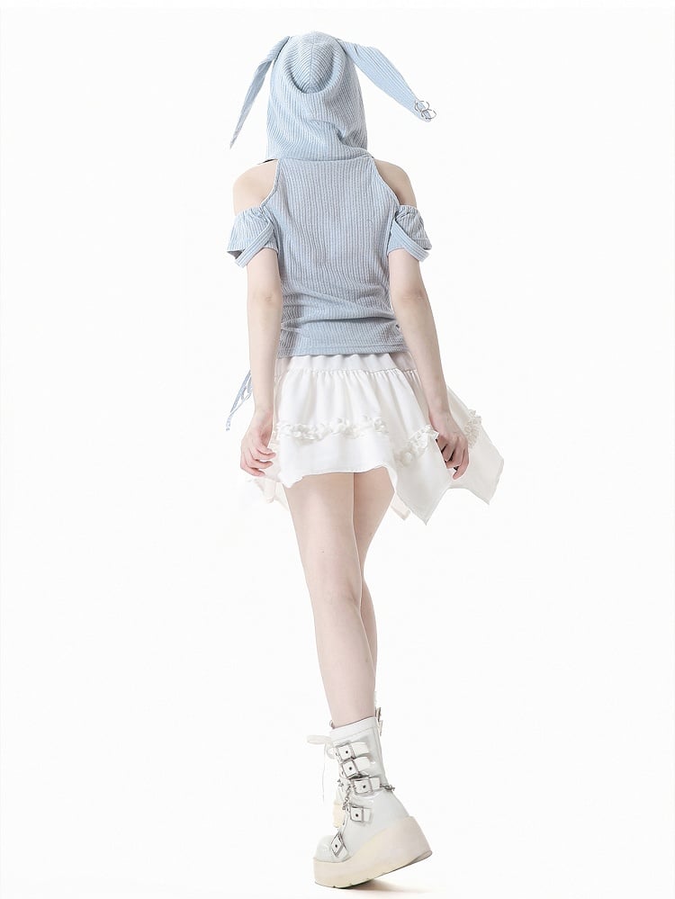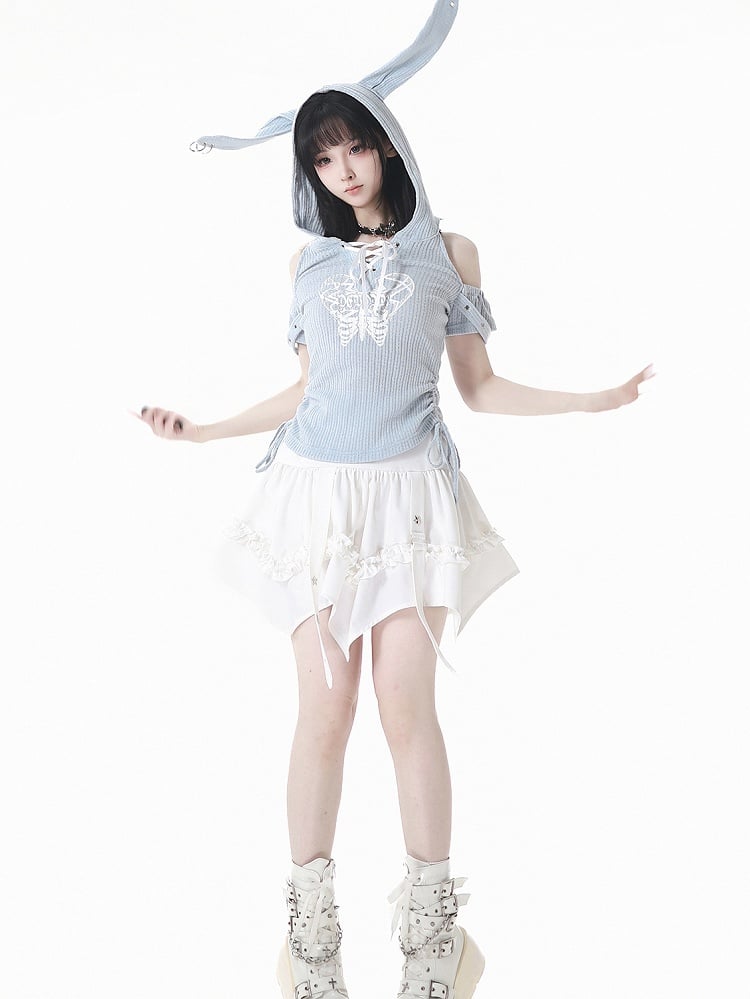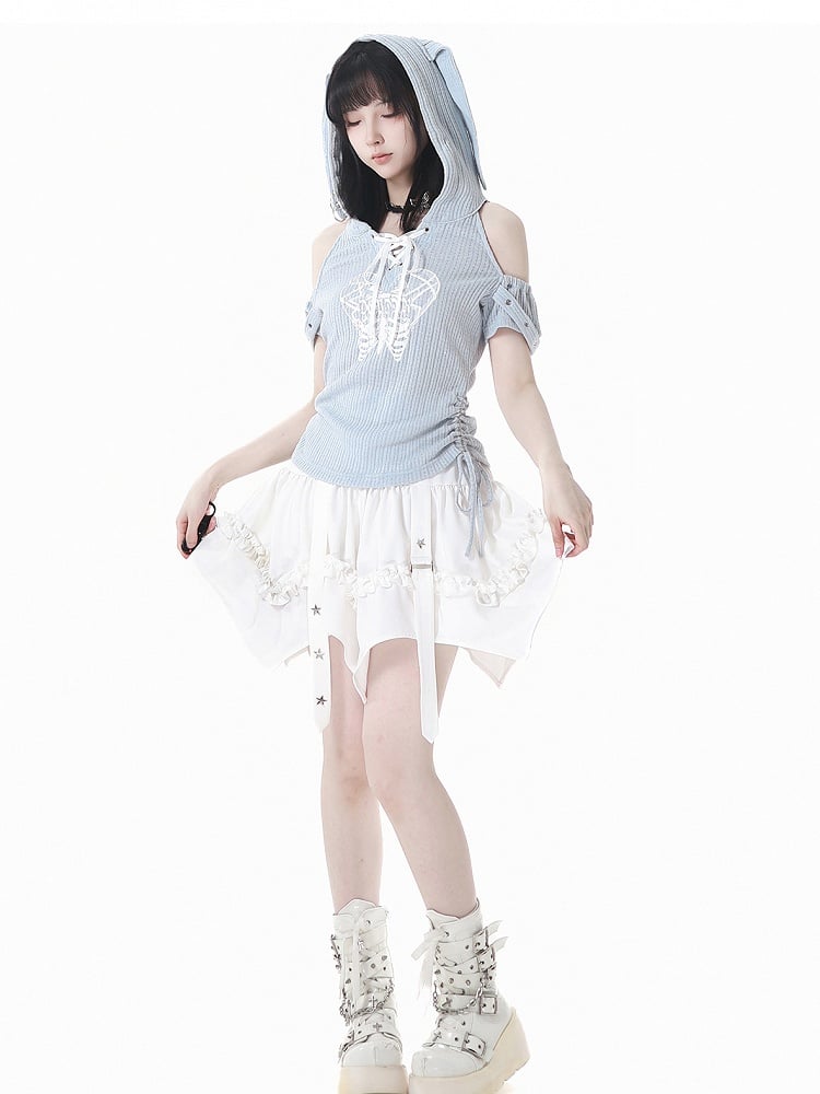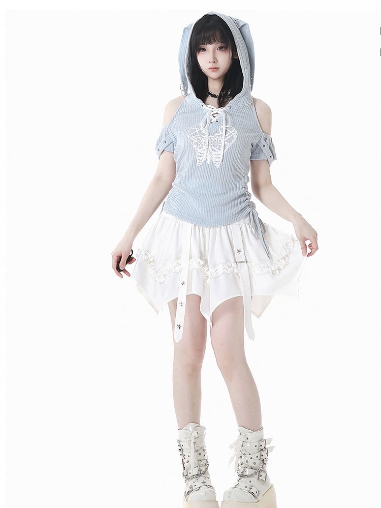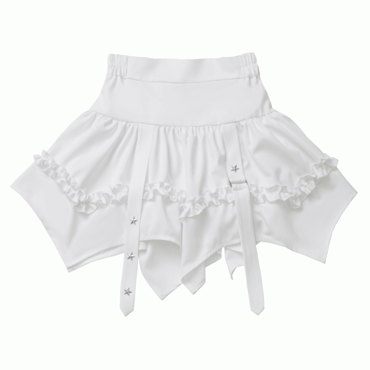 バレエコア ホワイト カーブヘム スタースカート スタッド