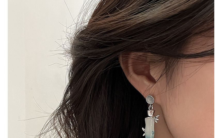 竹製フェイクキャットアイストーン合金製ダングルイヤリング