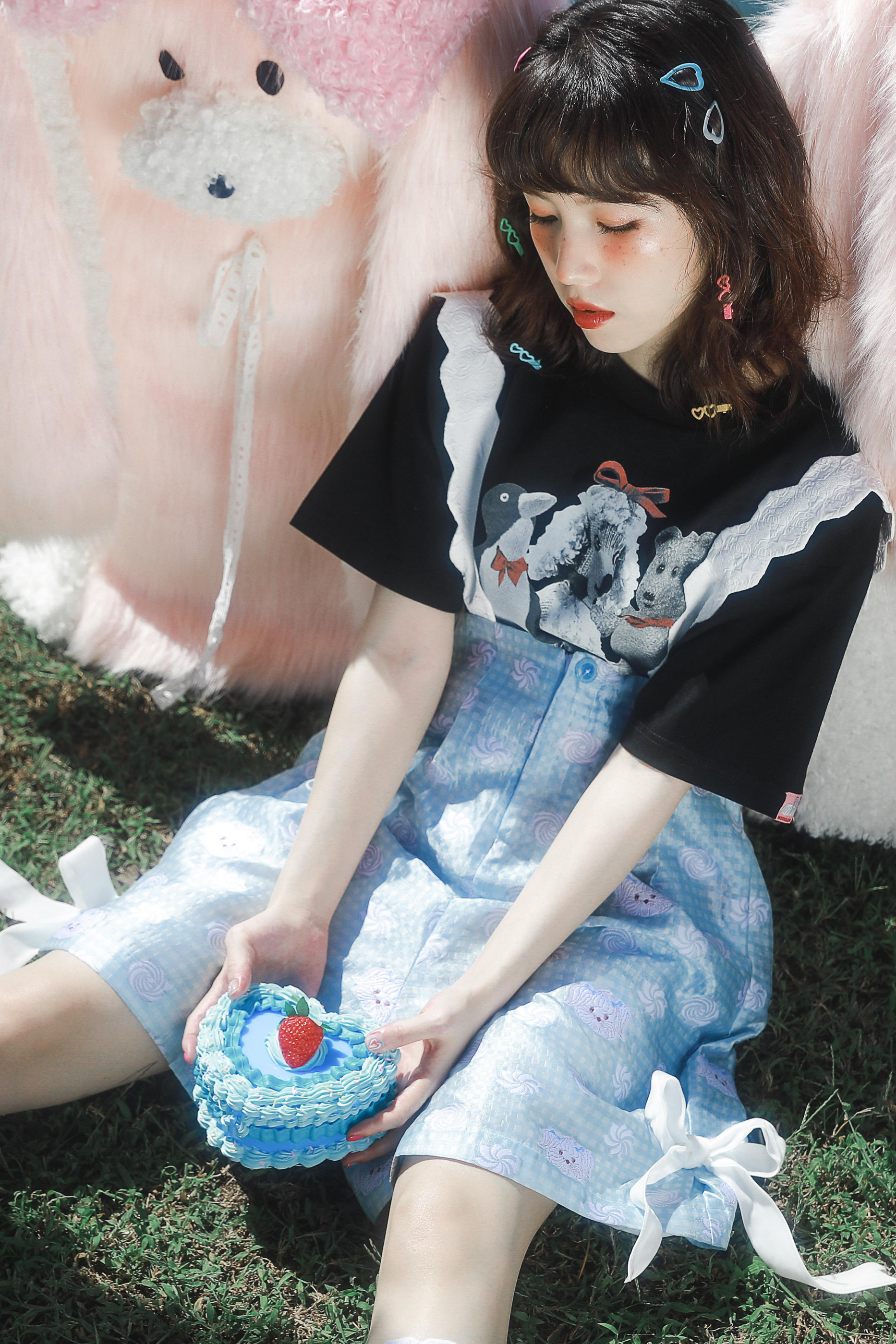 黒と白のオールドスクールロリータファッションドレス蝶結びロリータJSKセット