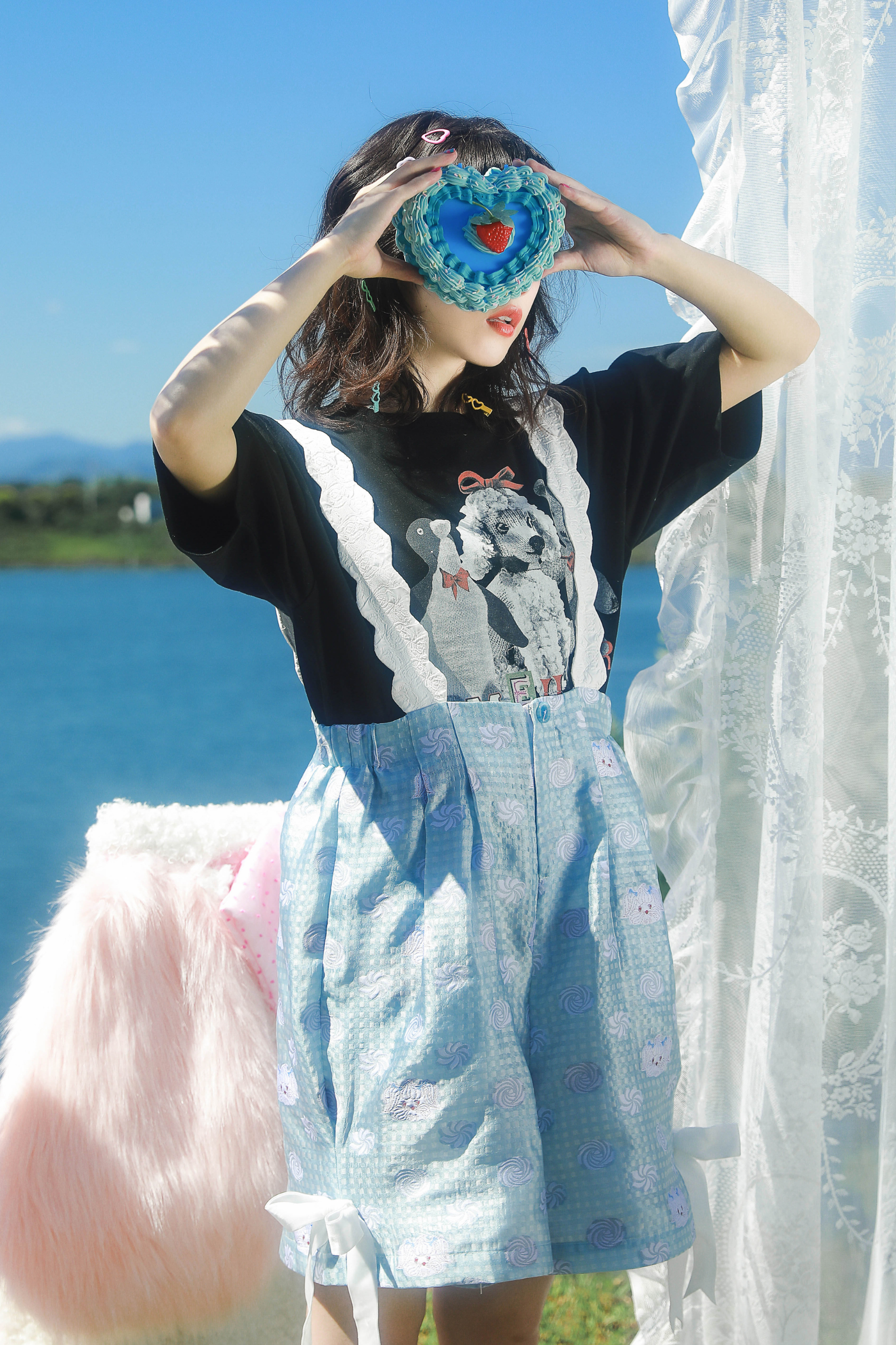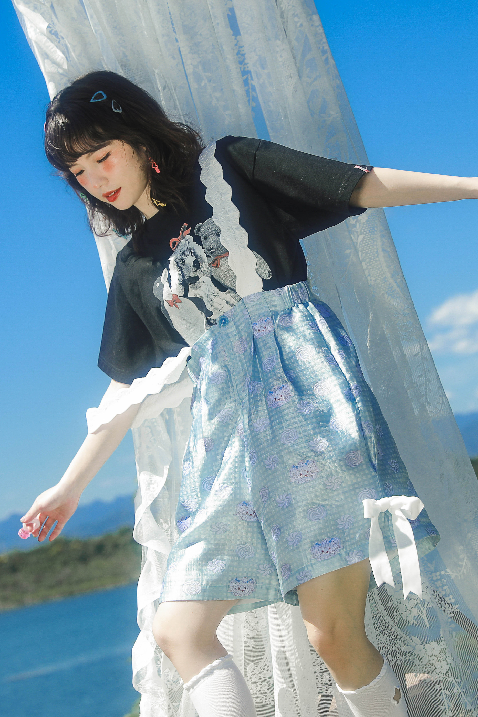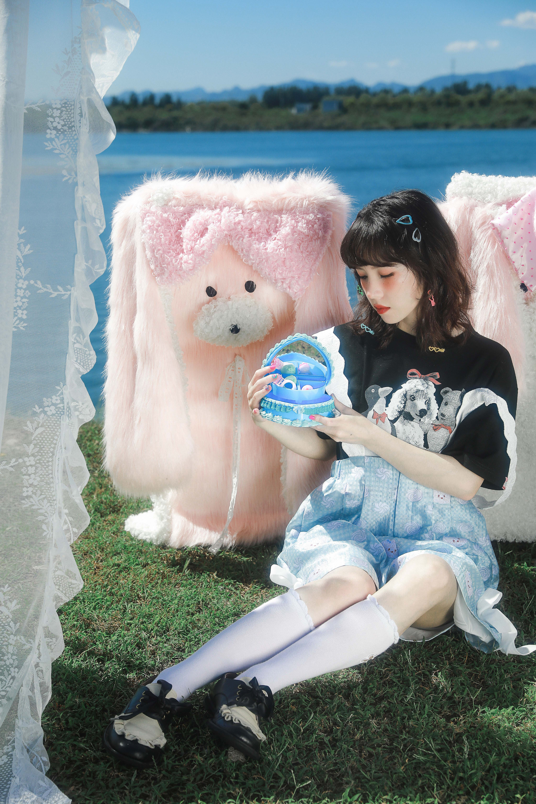 青と白のオールドスクールロリータファッションドレス 蝶結びディテール JSK セット