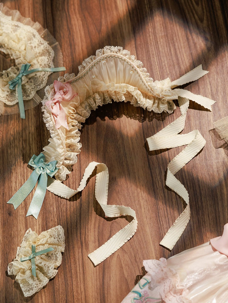 青と白のオールドスクールロリータファッションドレス 蝶結びディテール JSK セット
