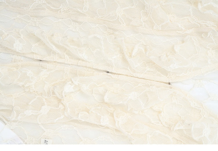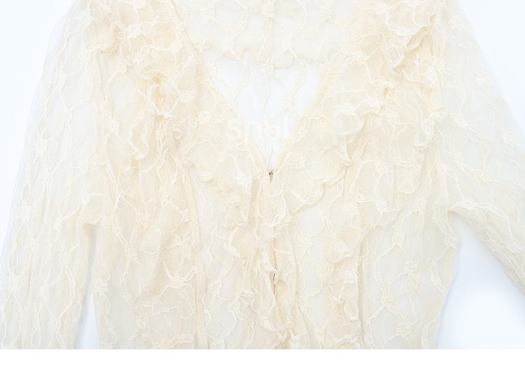 ベージュのカスケーディングフリルトリムレーストップス