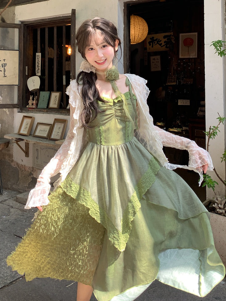 青と白のオールドスクールロリータファッションドレス 蝶結びディテール JSK セット