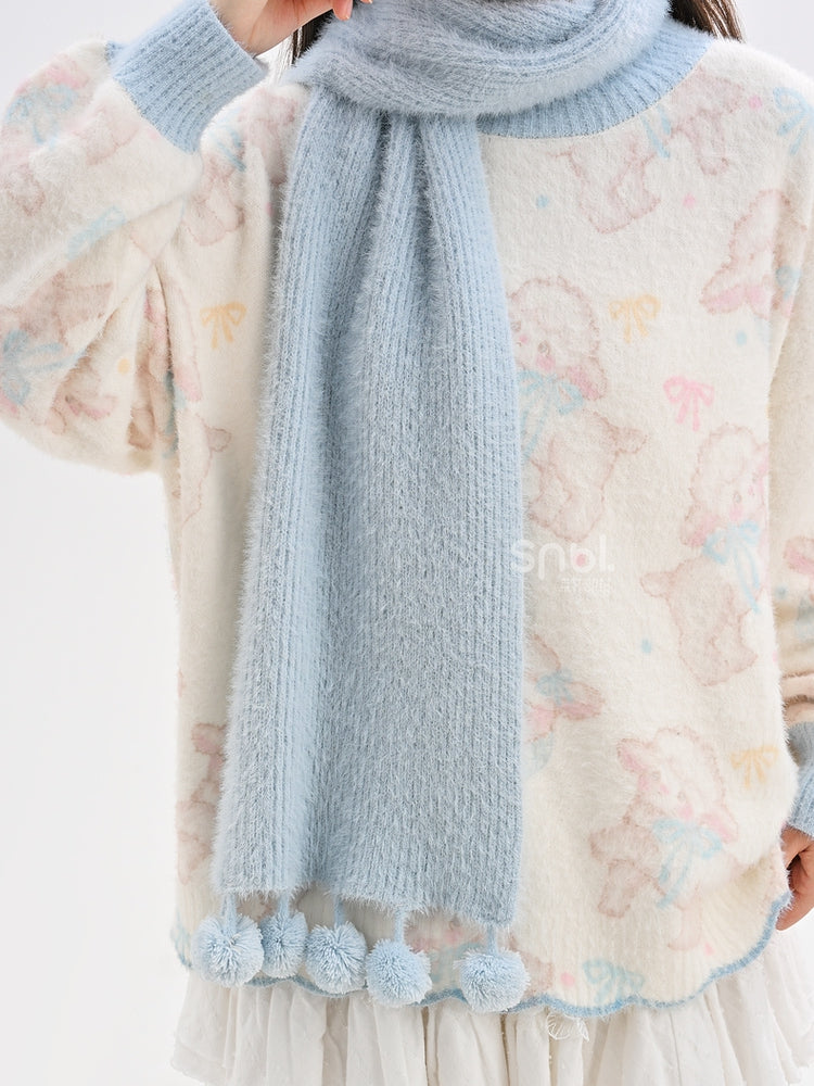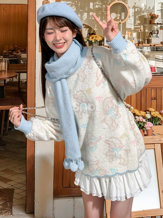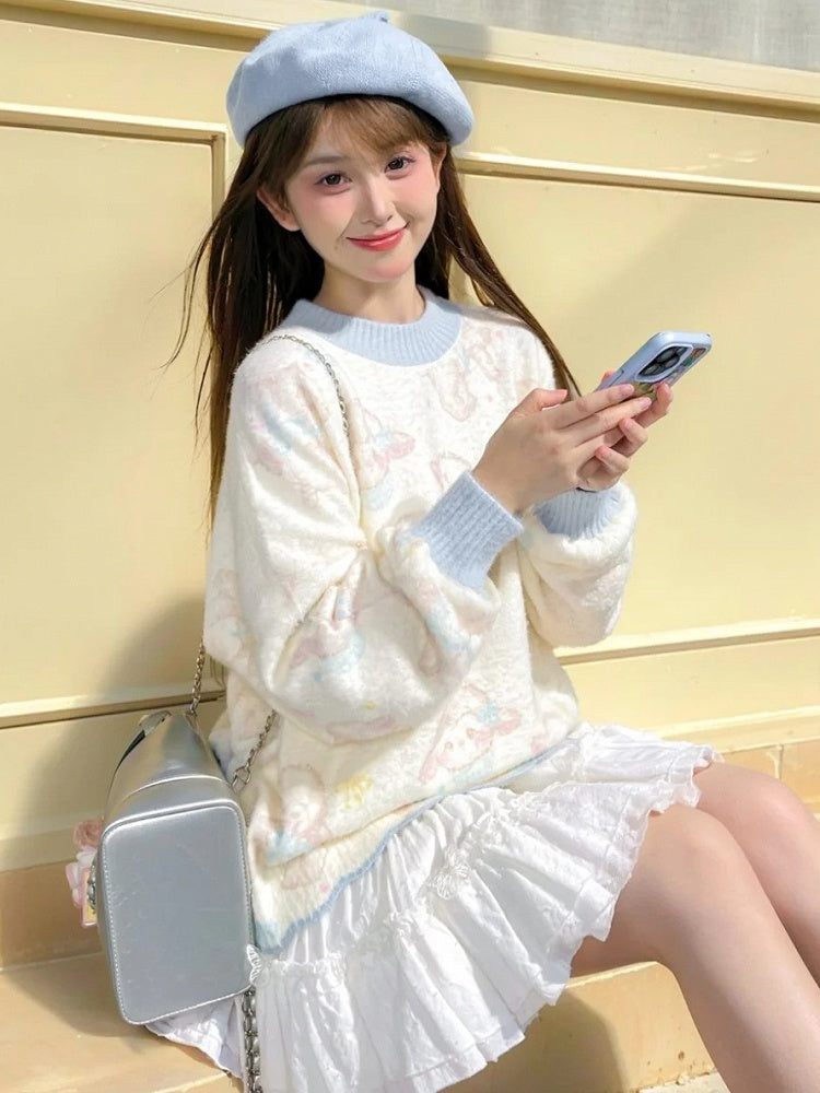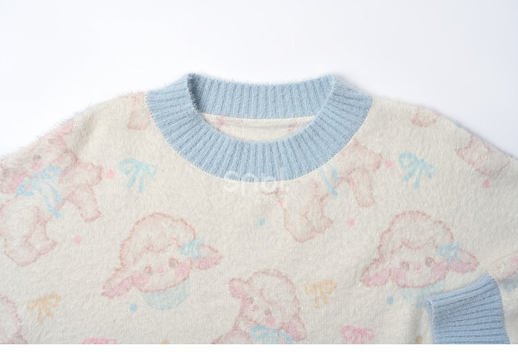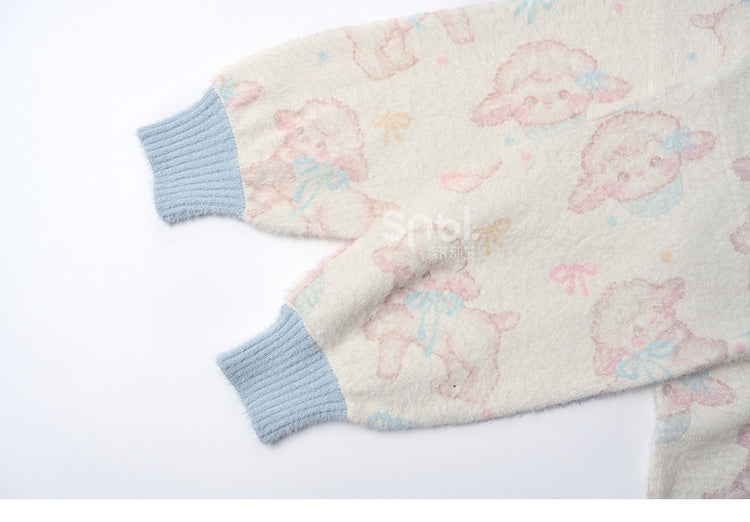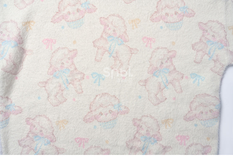 スカラップエッジトリムのベージュのキュートなラム柄セーター
