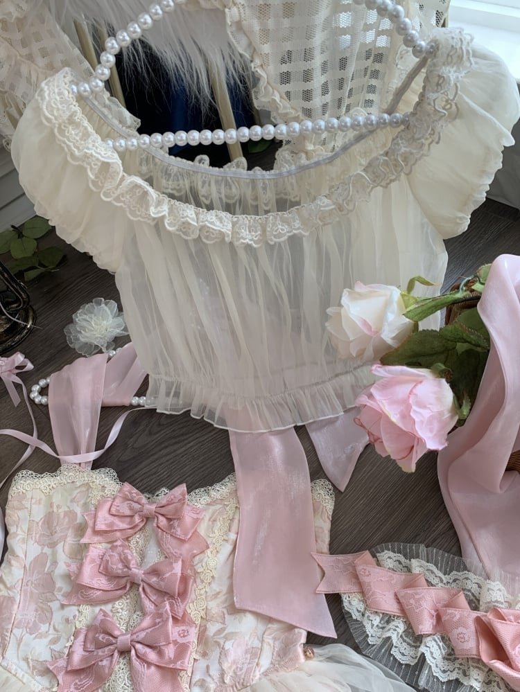 ピンクと白のオールドスクールロリータファッションドレス、蝶結びディテール、ロリータJSKセット