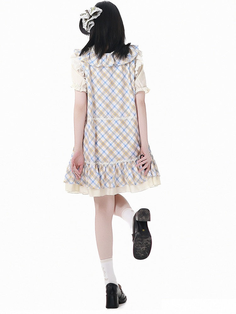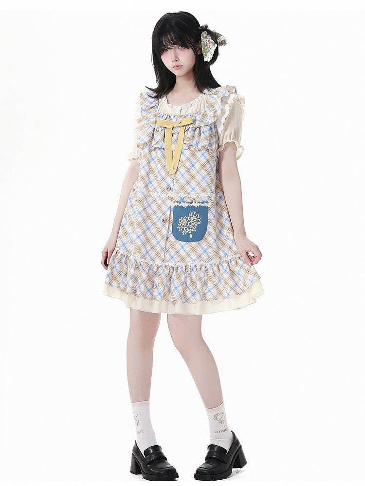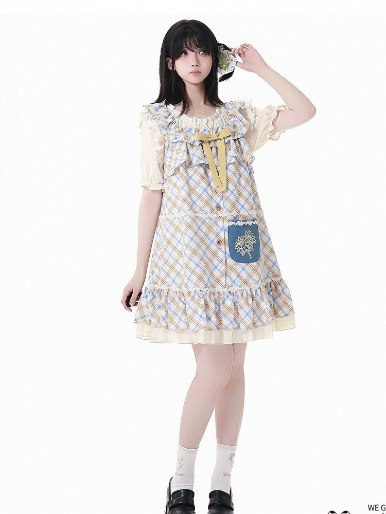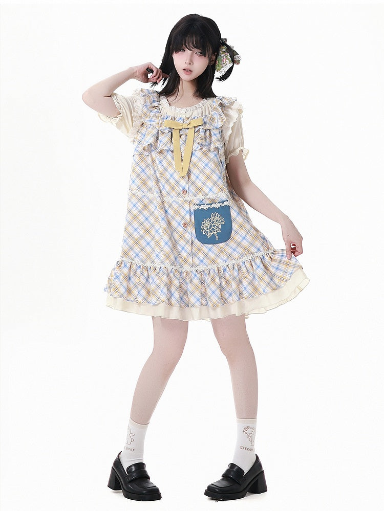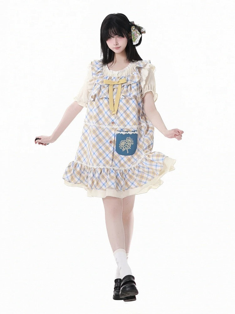 青と白のオールドスクールロリータファッションドレス 蝶結びディテール JSK セット