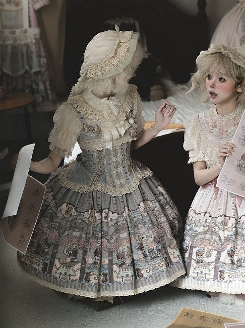 ピンクと白のオールドスクールロリータファッションドレス、蝶結びディテール、ロリータJSKセット