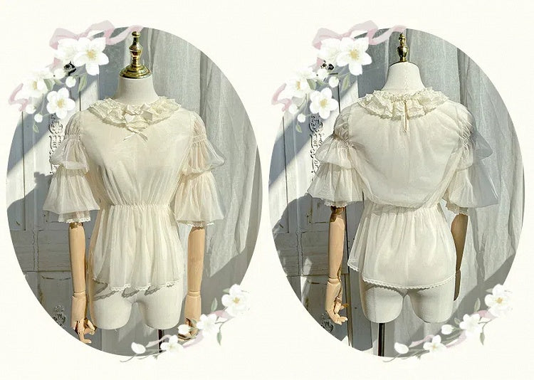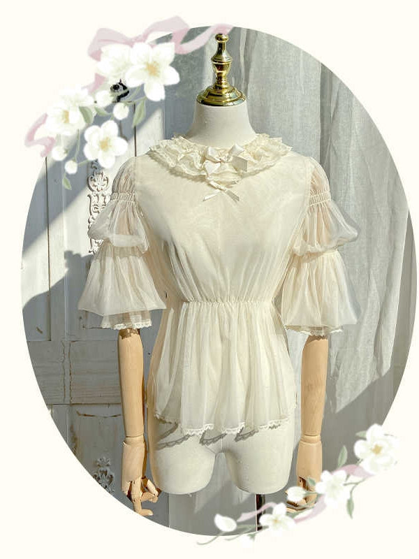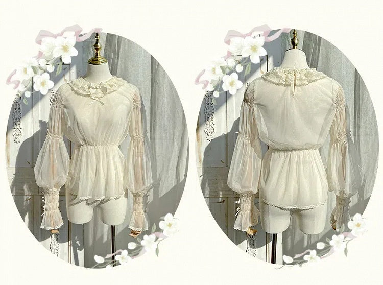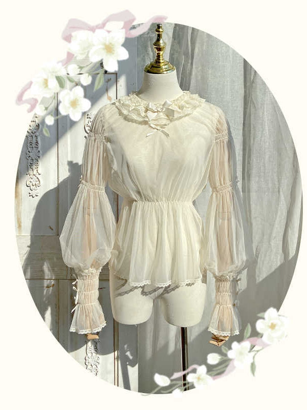 ユニークなレッグ・オブ・マトンスリーブとセミシースルー素材が特徴の、愛らしいブラウス。どんな装いにもエレガントさとフェミニンさをプラスしてくれます。このキュートなベージュのブラウスで、シックでスタイリッシュな装いを演出しましょう。