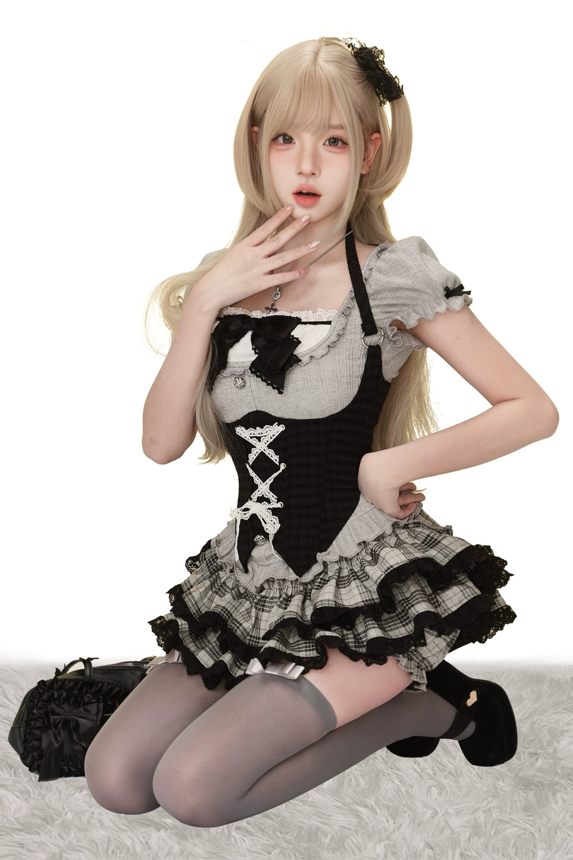 黒と白のオールドスクールロリータファッションドレス蝶結びロリータJSKセット