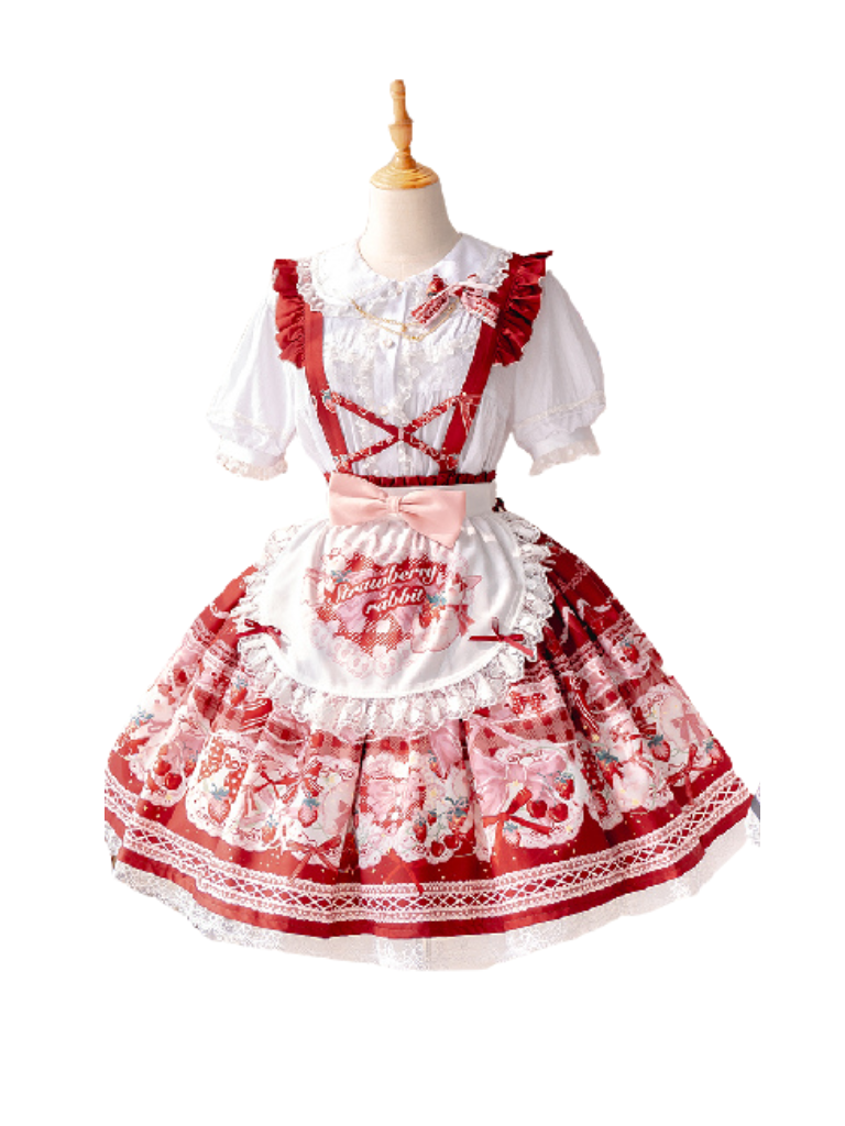 愛らしいベリーフライドラビットドレスのロリータセットが登場!チャーミングなドレスとお揃いのアクセサリーがセットになっています。ワードローブにキュートなアクセントを添えるのにぴったりです。上質な素材を使用し、快適な着心地を実現。この素敵なセットで、ワンランク上のスタイルを演出して、個性をアピールしましょう。