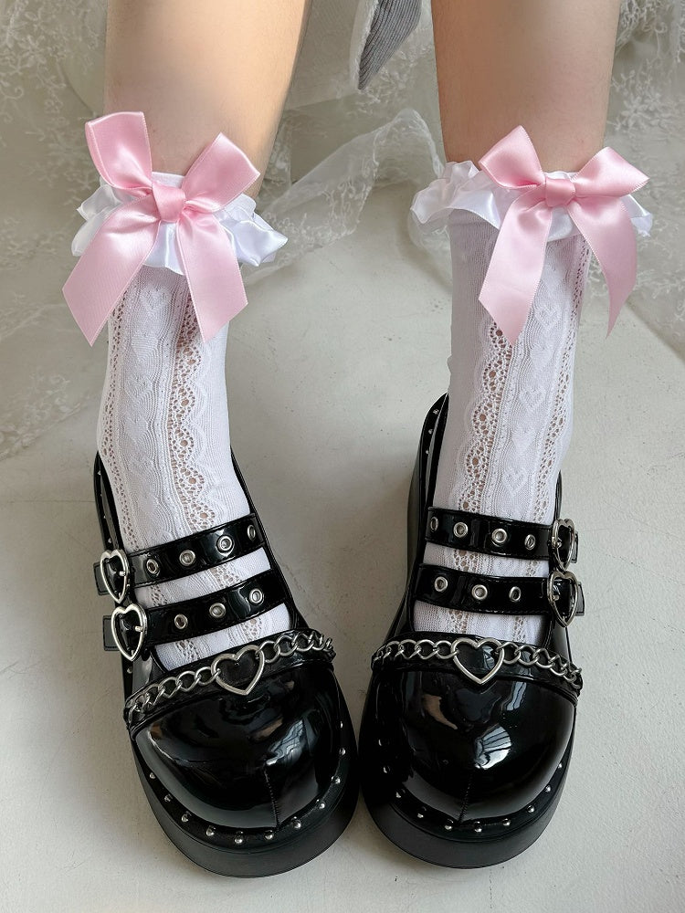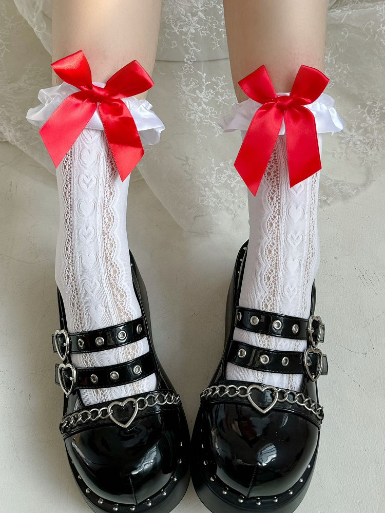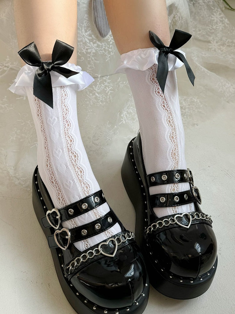 大きなリボンとフリルトリムのロリータソックスで、あなたのキュートさを解き放ちましょう。大きなリボンとフリルトリムがあしらわれたこのソックスは、どんなコーディネートにも愛らしいアクセントを添えてくれます。上質な素材を使用し、履き心地も良く、スタイリッシュ。どんなコーディネートにも甘さをプラスしてくれます。