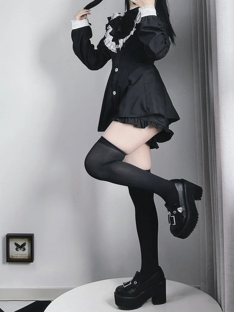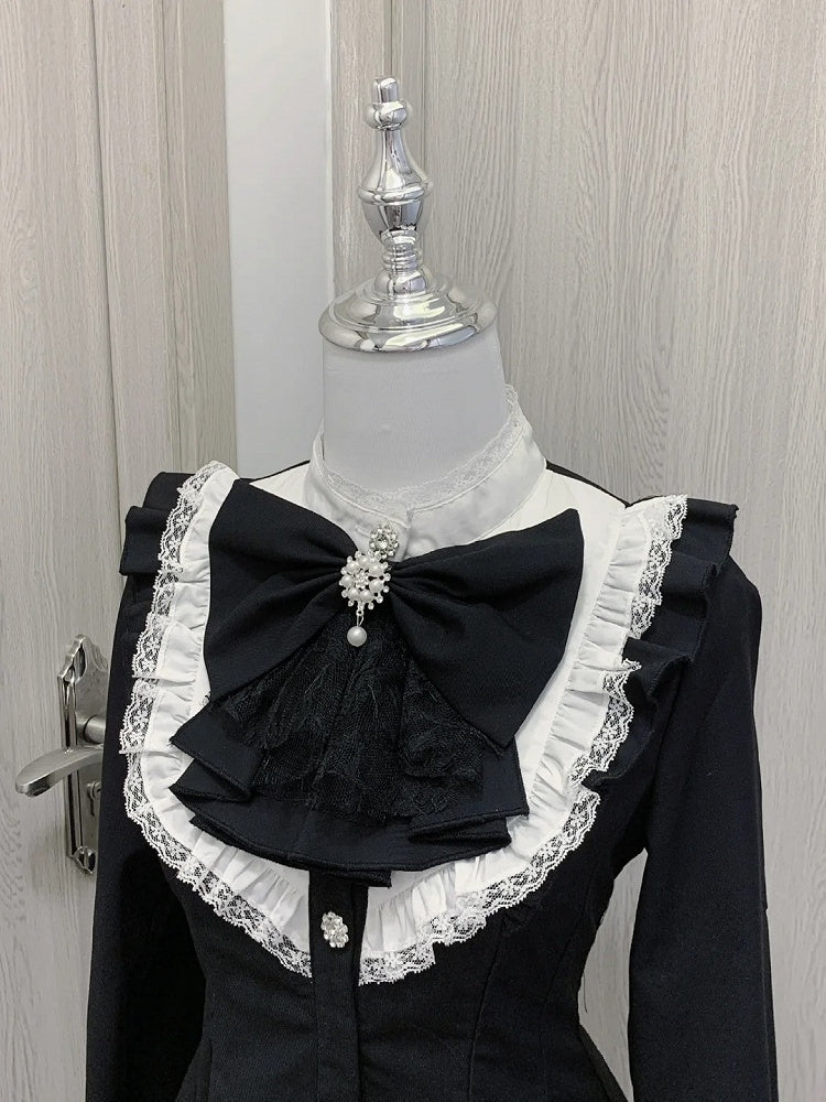 黒と白のオールドスクールロリータファッションドレス蝶結びロリータJSKセット