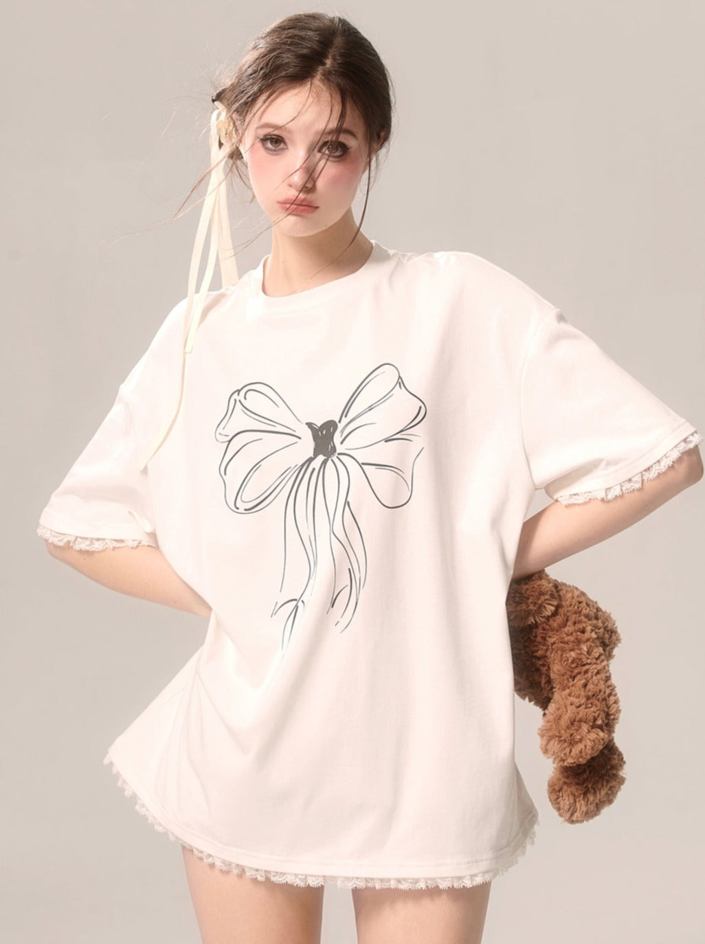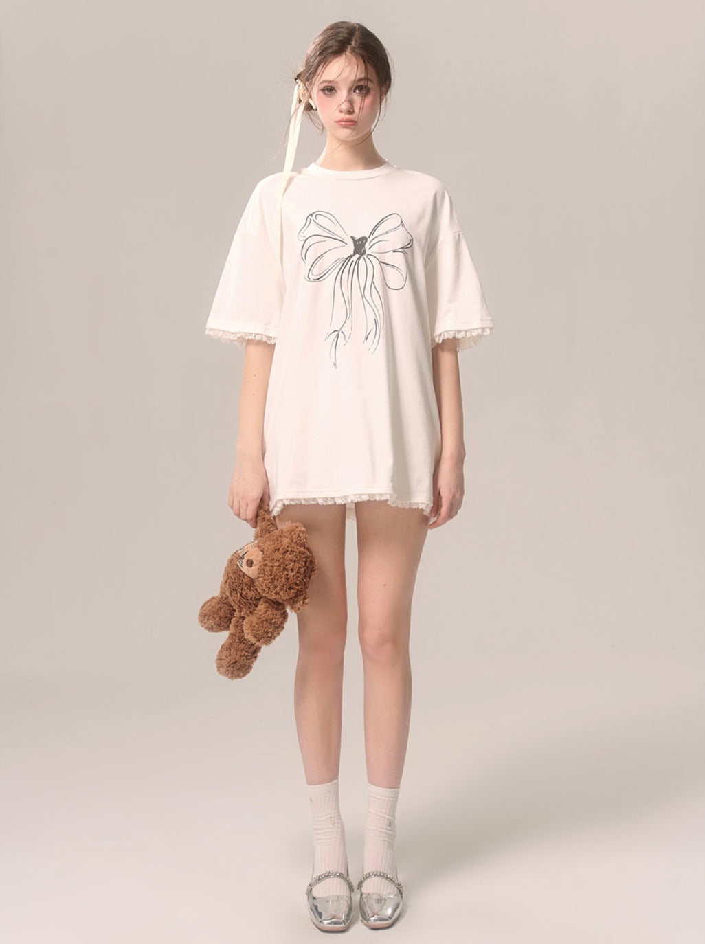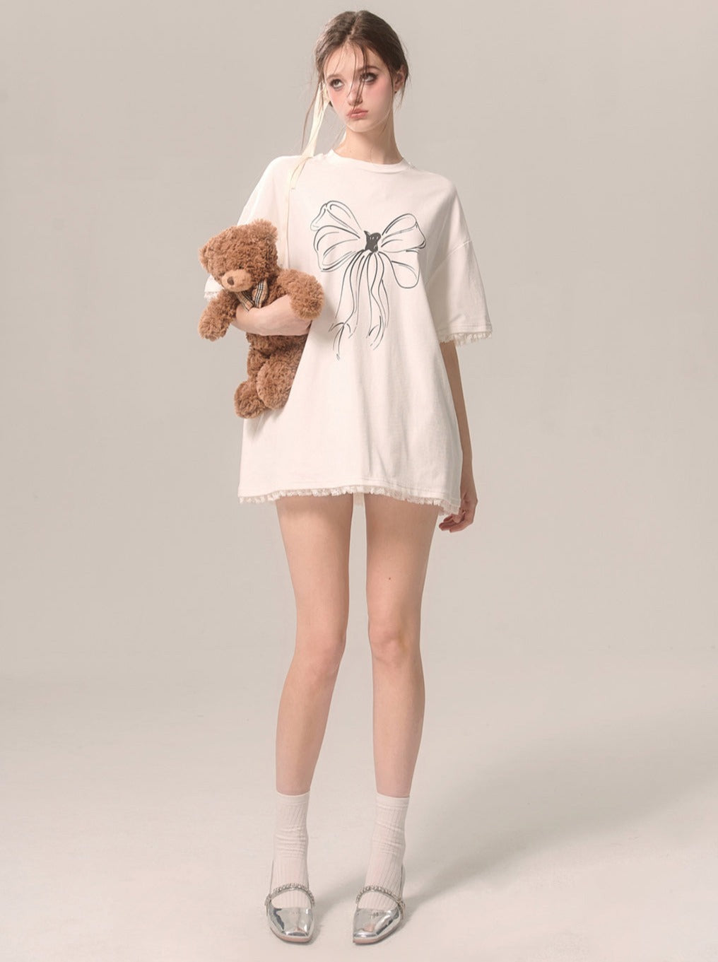 キュートなビッグルーズイラストTシャツ。ユニークなアートリボンデザインが特徴です。上質な素材を使用し、着心地も良くスタイリッシュ。どんなカジュアルなシーンにもぴったりです。