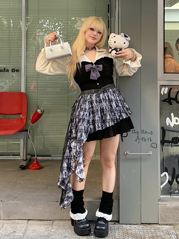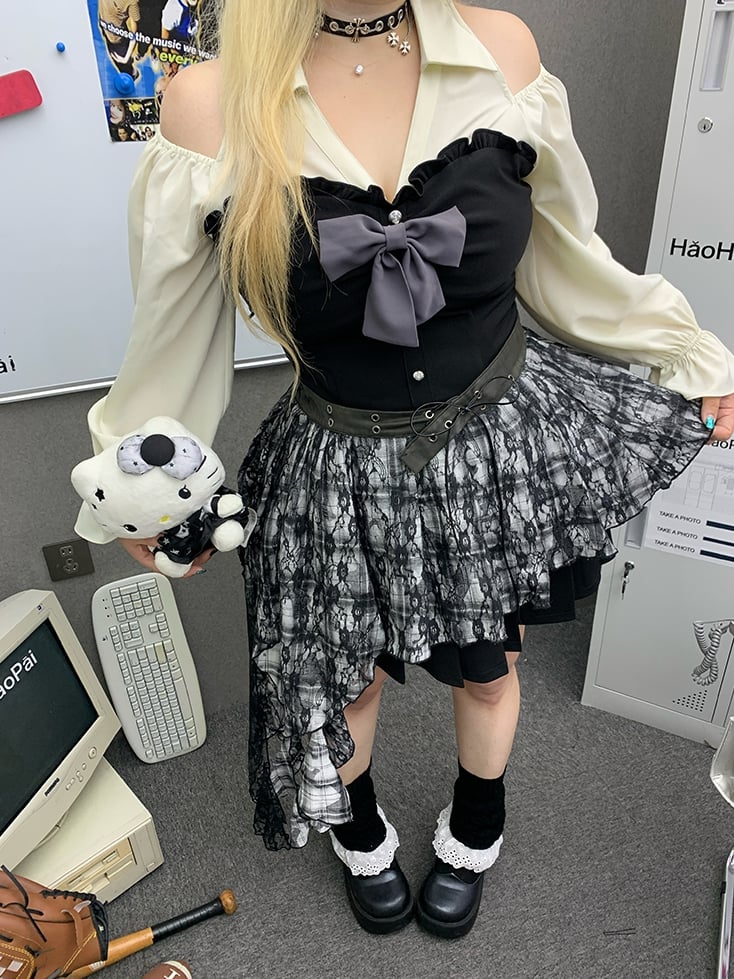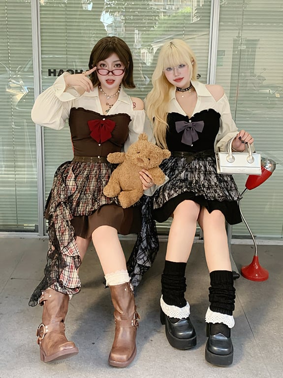 黒と白のオールドスクールロリータファッションドレス蝶結びロリータJSKセット