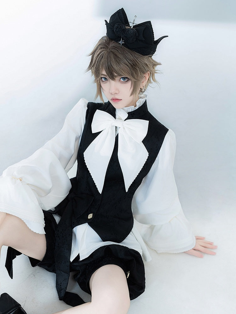 黒と白のオールドスクールロリータファッションドレス蝶結びロリータJSKセット