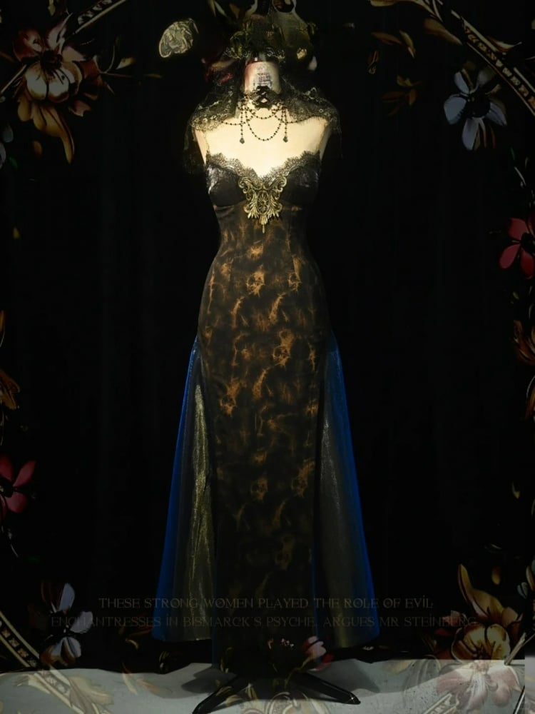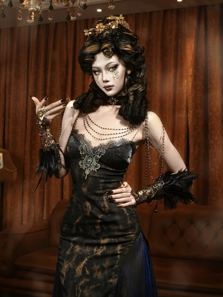 ブラック&ゴールドのスリミングスリップドレス