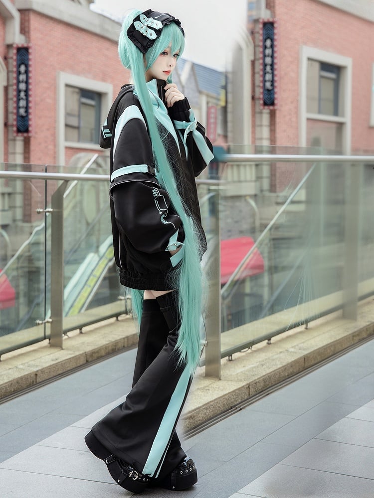 黒と緑の地雷サイバーパンクオーバーニーレッグウォーマー